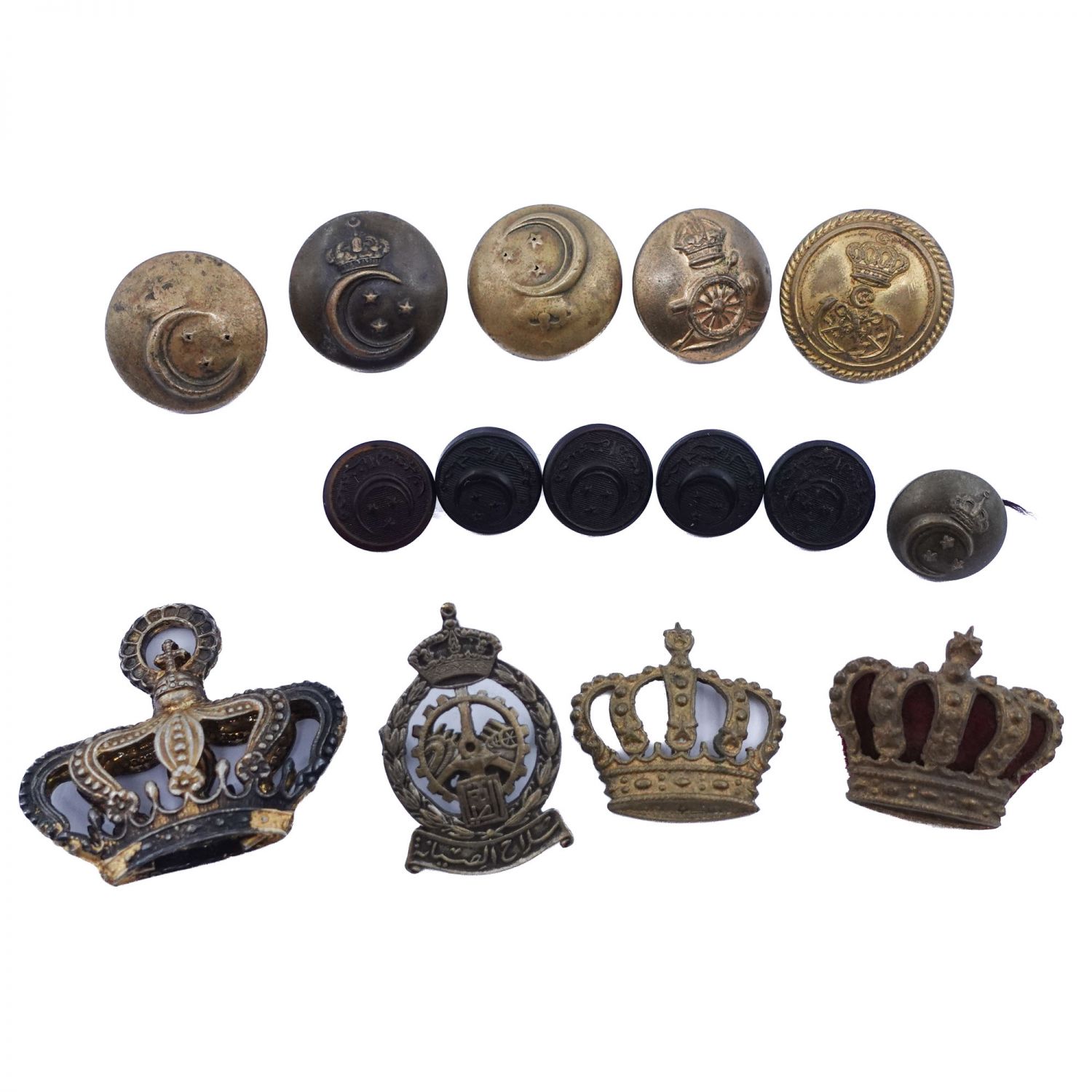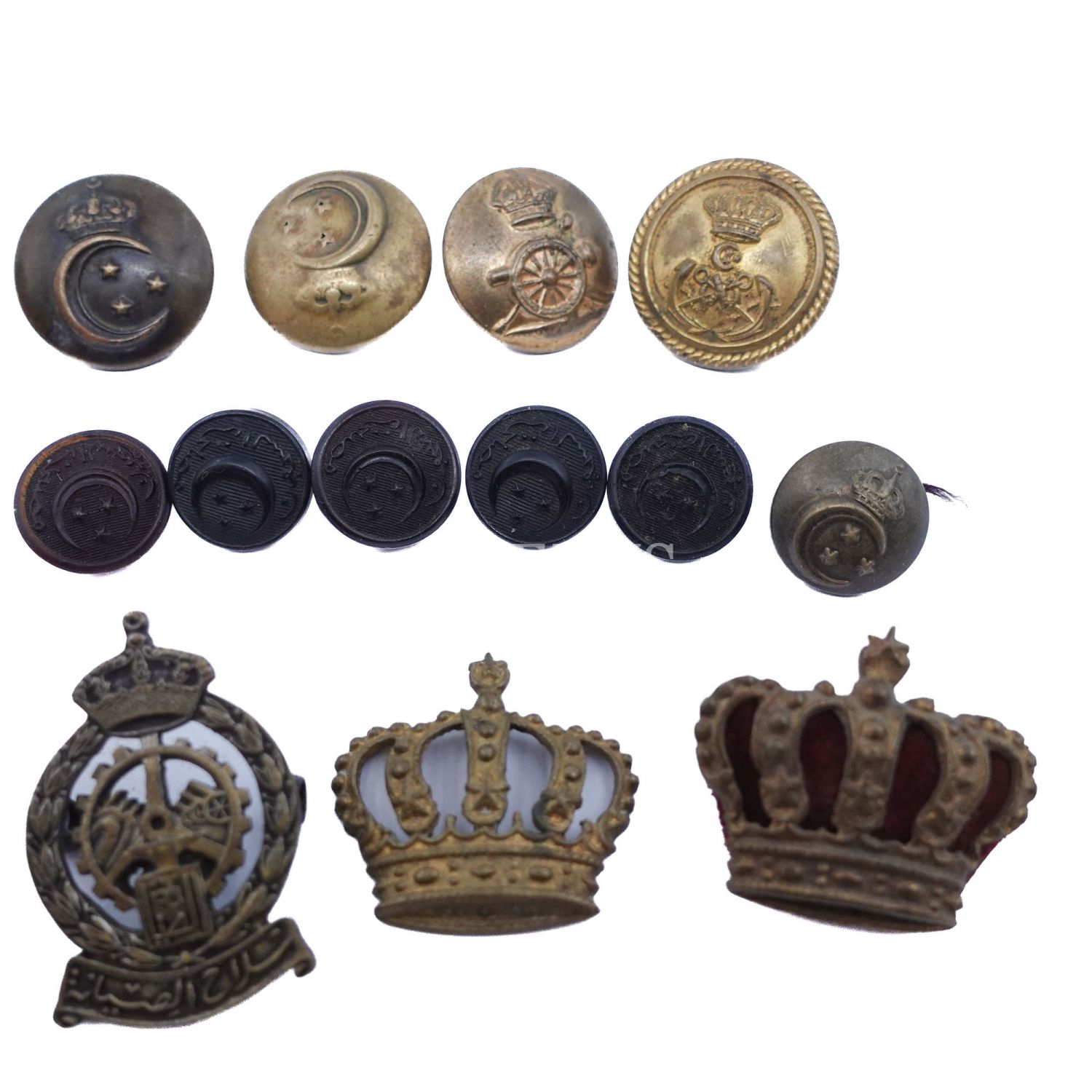 Mısır (Hidiv) ve Birleşik Krallık amblemli ve ibareli düğme-broş lotu, muhtelif ebatlarda toplam 15 parça...