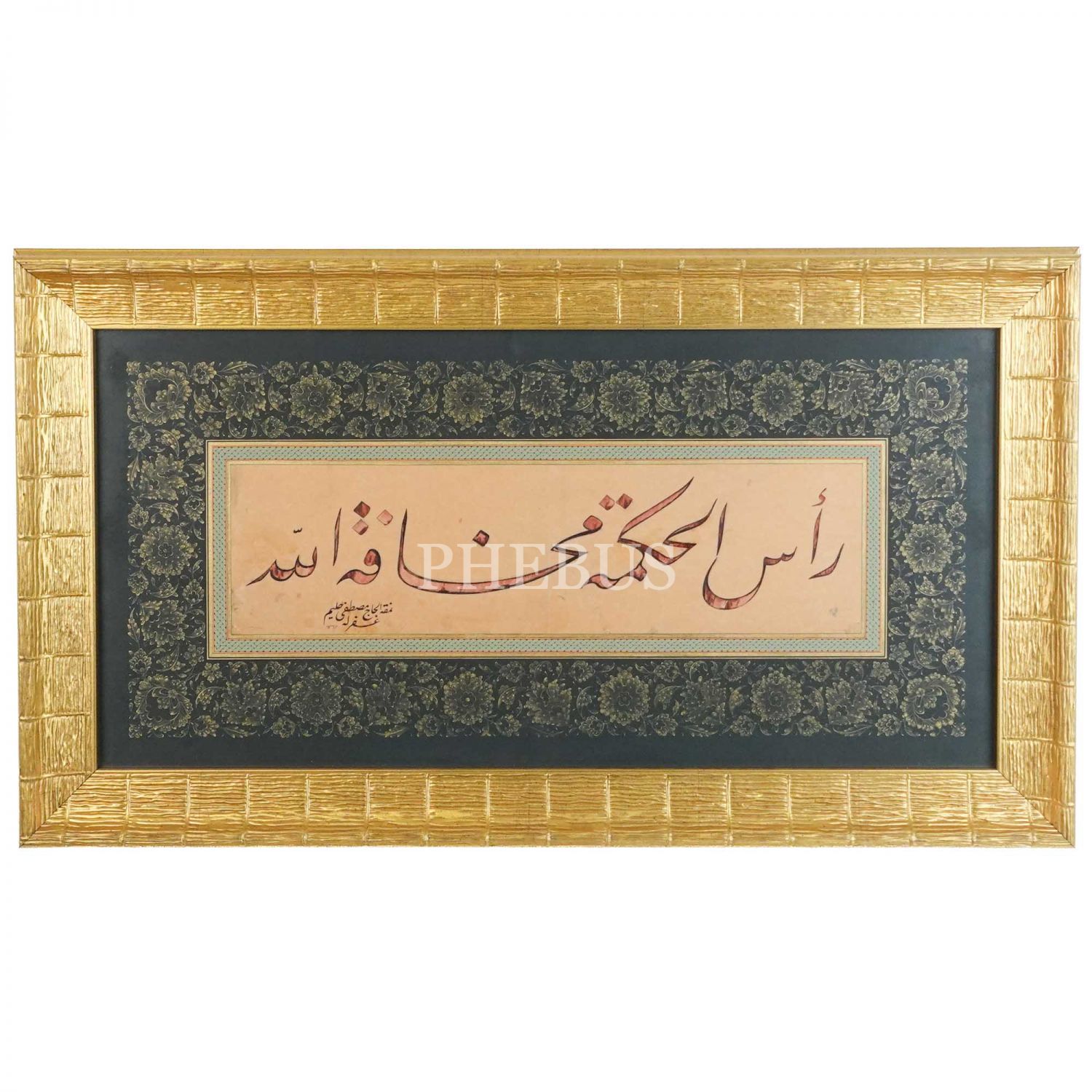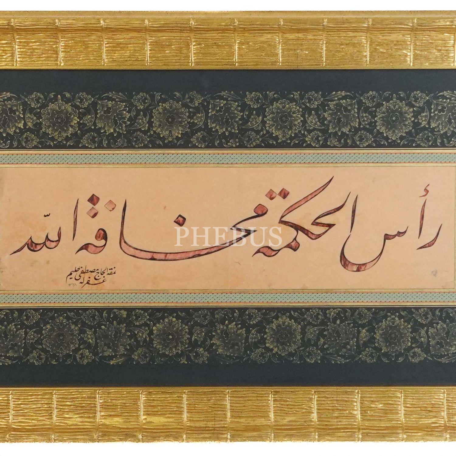 Yazı: Ra´sü´l hikmeti mehâfetullah." Manası: "Hikmetin başı Allah korkusudur."