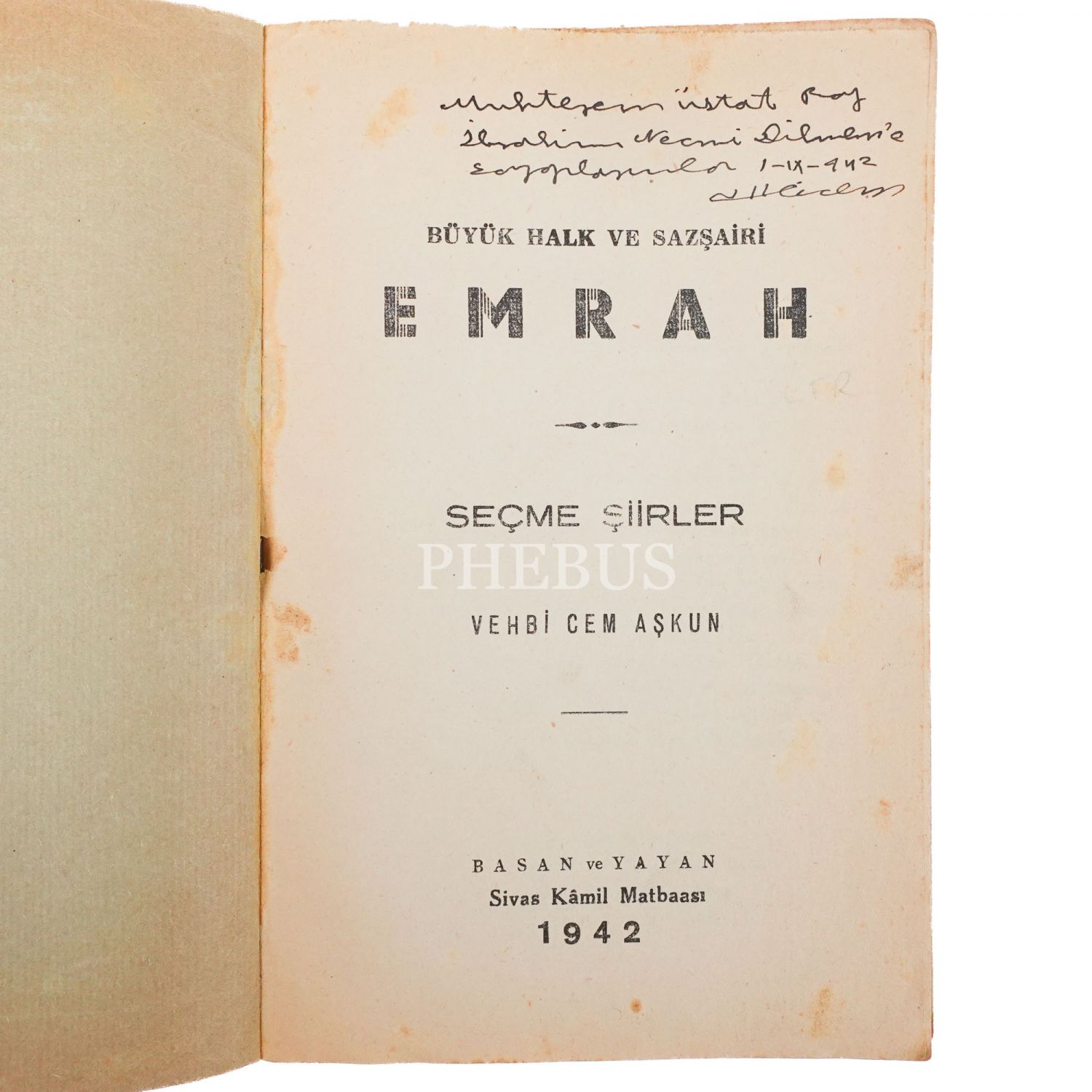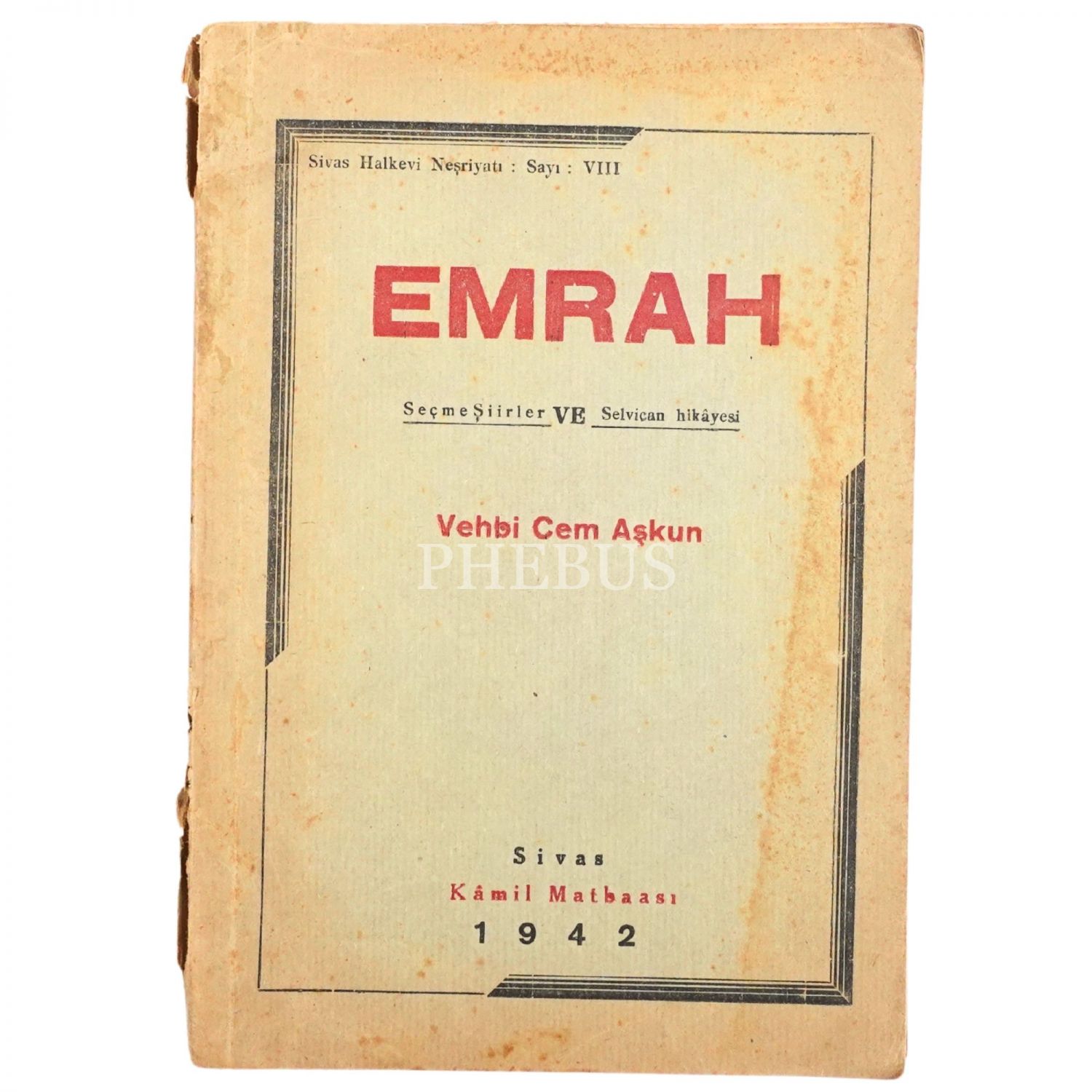 EMRAH: SEÇME ŞİİRLER VE SELVİCAN HİKAYESİ, Vehbi Cem Aşkun, 1942, Sivas Halkevi Neşriyatı, 115 sayfa, 14x21 cm...