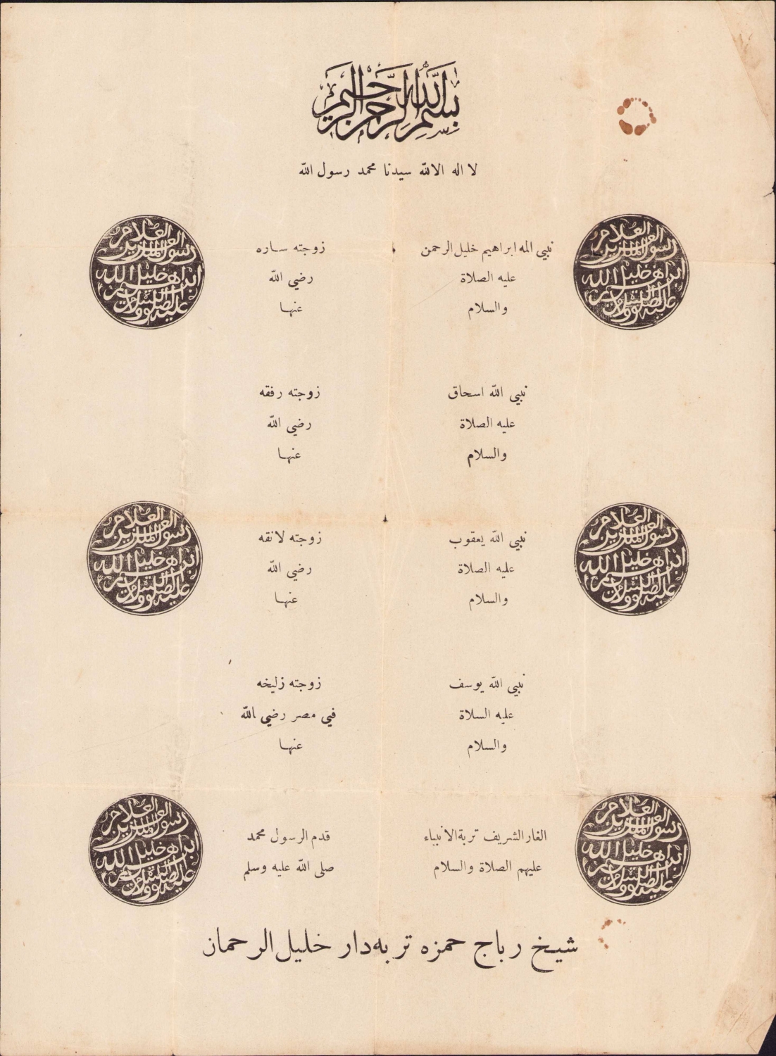 Türbedar Halil Errahman'a ait Arapça şecere, 24x33 cm