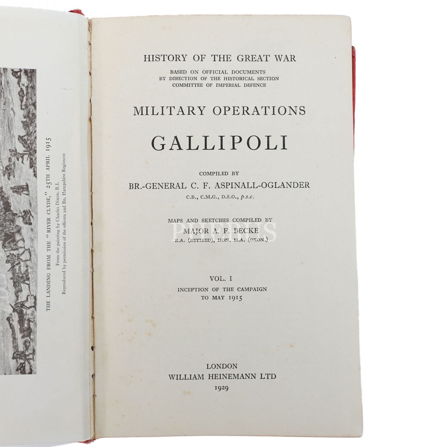 MILITARY OPERATIONS GALLIPOLI, C. F. Aspinall-Oglander, 1929, William Heinemann (Londra), 377 sayfa, 14x22 cm...