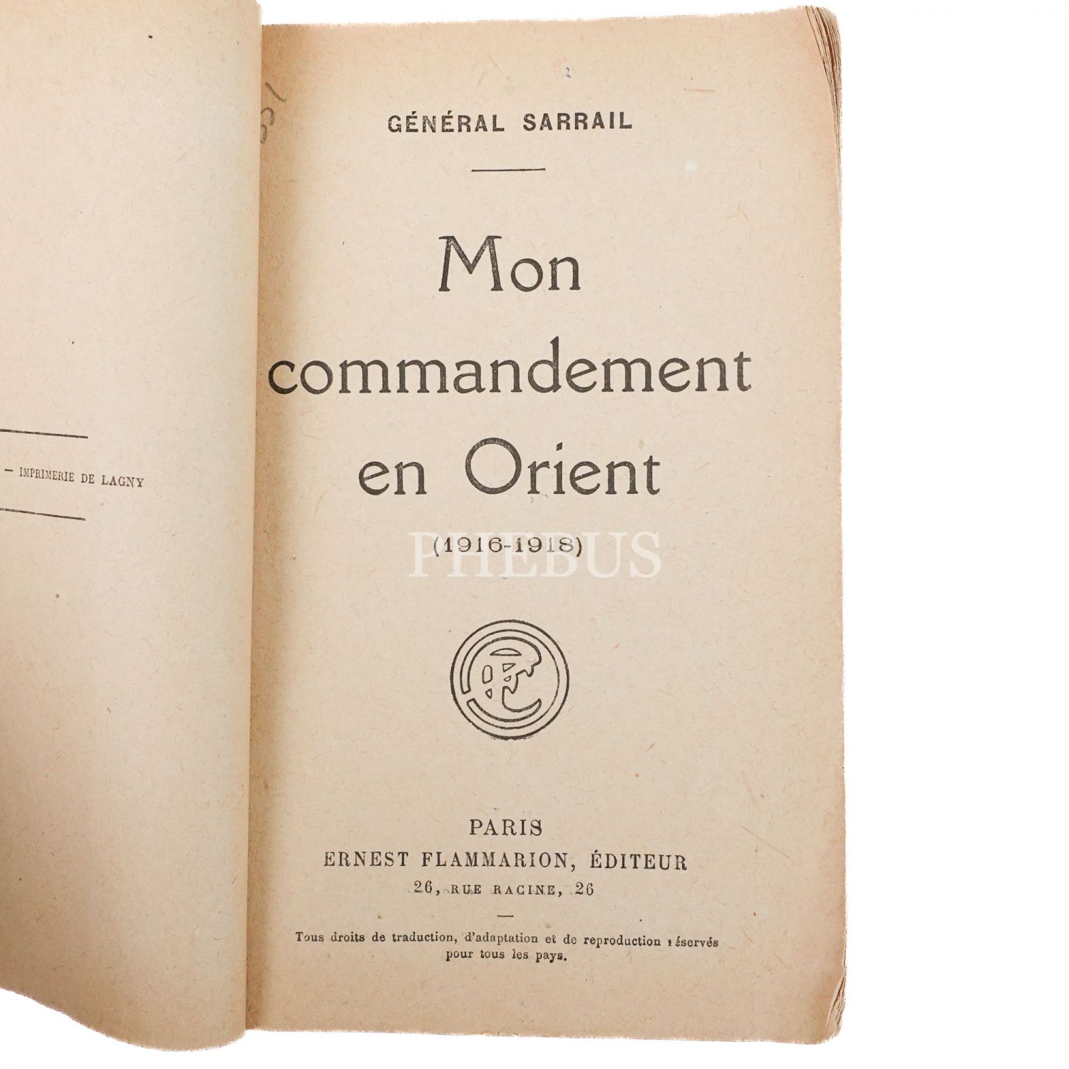 MON COMMANDEMENT EN ORİENT (1916-1918), 1920, Ernest Flammarion Editeur, 424 sayfa, 12x17 cm...
