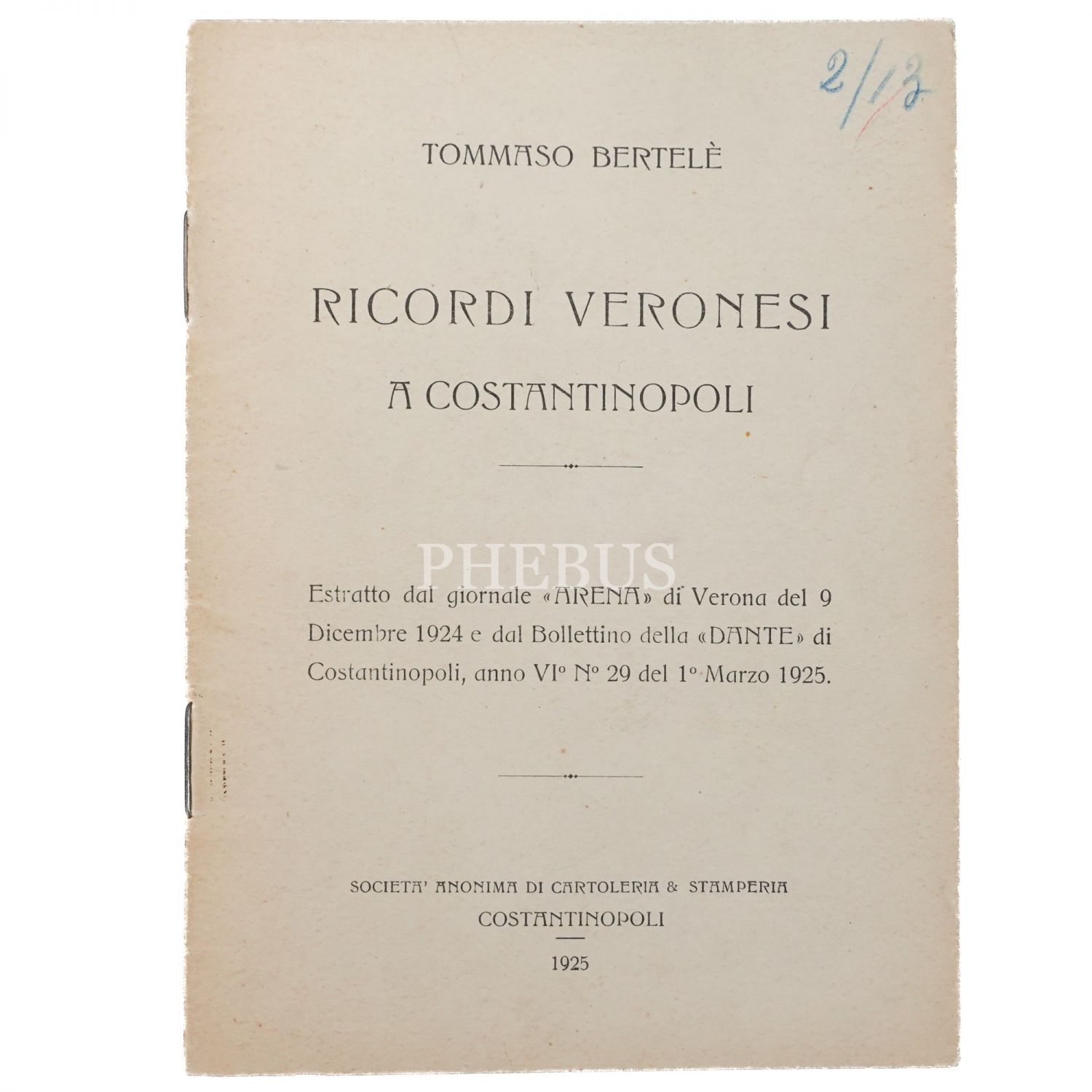 RICORDI VERONESI A COSTANTINOPOLI, Tommaso Bertele, 1925, Societa´ Anonima Di Cartoleria Stamperia (Costantinopoli), 9 sayfa, 12x16 cm...
