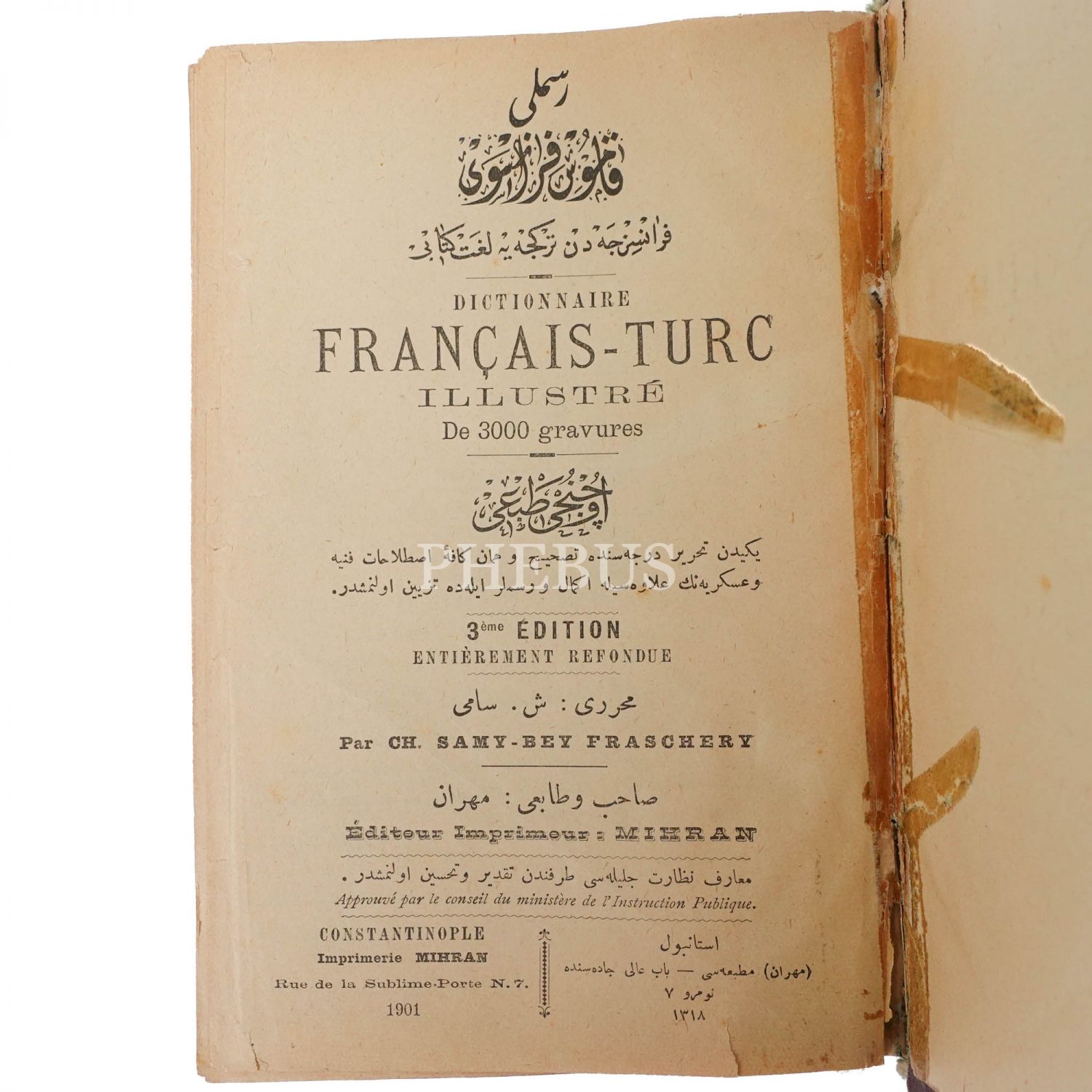 RESİMLİ KAMUS-I FRANSEVİ (Fransızca´dan Türkçe´ye Lugat Kitabı), Şemseddin Sami, 1901, Mihran Matbaası, 2240 sayfa, 14x20 cm...