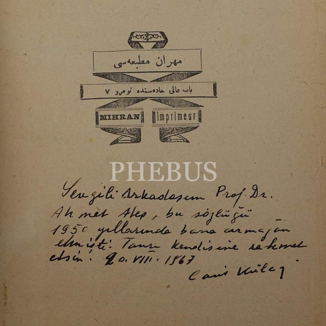 Ünlü edebiyat tarihçisi Ahmet Ateş'ten Cahit Külebi'ye hediye edilen ve Külebi'nin el yazısı ile notlandırılan Osmanlıca-Fransızca sözlük...