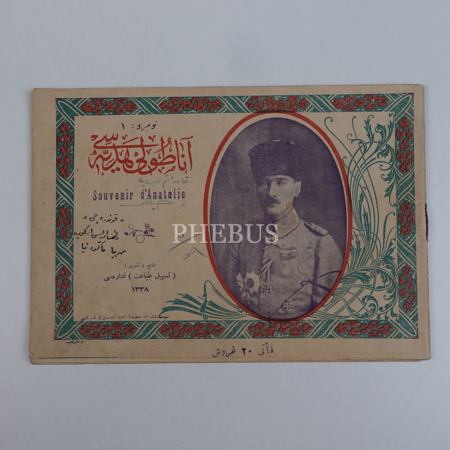 Mustafa Kemal Atatürk ve Türk Kurtuluş Savaşı kahramanlarının fotoğrafları başta olmak üzere, Milli Mücadele´den savaş ve Yunan mezalimi fotoğraflarına yer verilen, kapağında Mustafa Kemal Atatürk´ün fotoğrafının yer aldığı ANADOLU HEDİYESİ (Souvenir d´Anatolie) isimli albümün ilk sayısı, Teshil-i Tıbaat İdaresi, 1337, 32 sayfa, 23x15 cm...