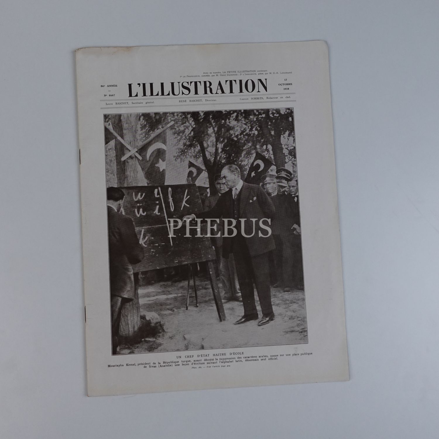 Yeni harfleri vatandaşlara tanıtan Mustafa Kemal Atatürk´ü kapağına taşıyan L´ILLUSTRATION dergisi, 13 Ekim 1928, No. 4467, 31x41 cm...