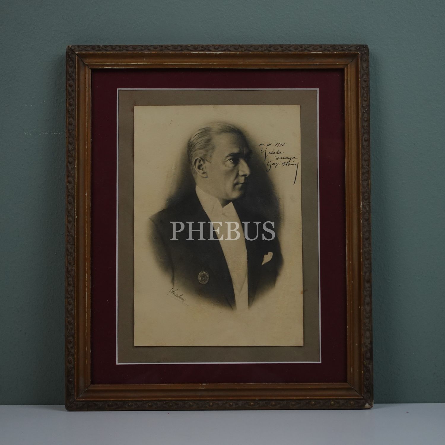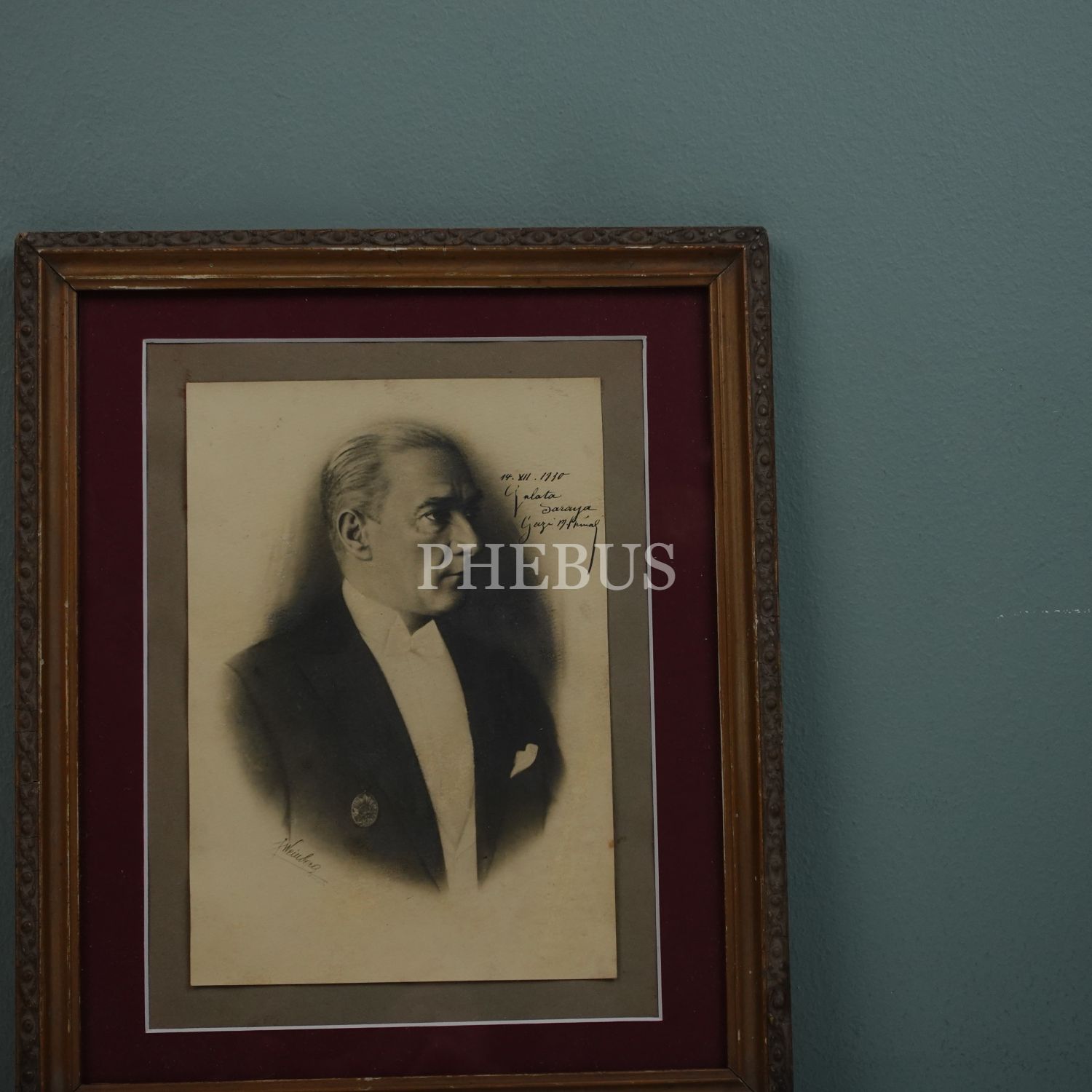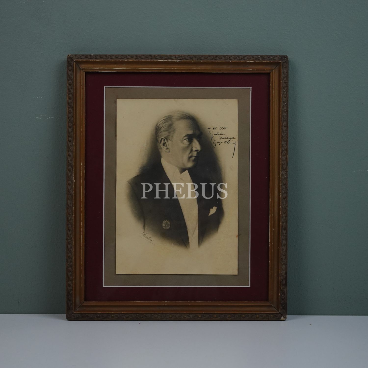 Mustafa Kemal Atatürk´ün, Galatasaray Lisesi´nden dereceyle mezun olan öğrencilere hediye edilen baskı fotoğrafı, Foto J. Weinberg, fotoğraf 16x23 cm, çerçeve 29x35 cm...