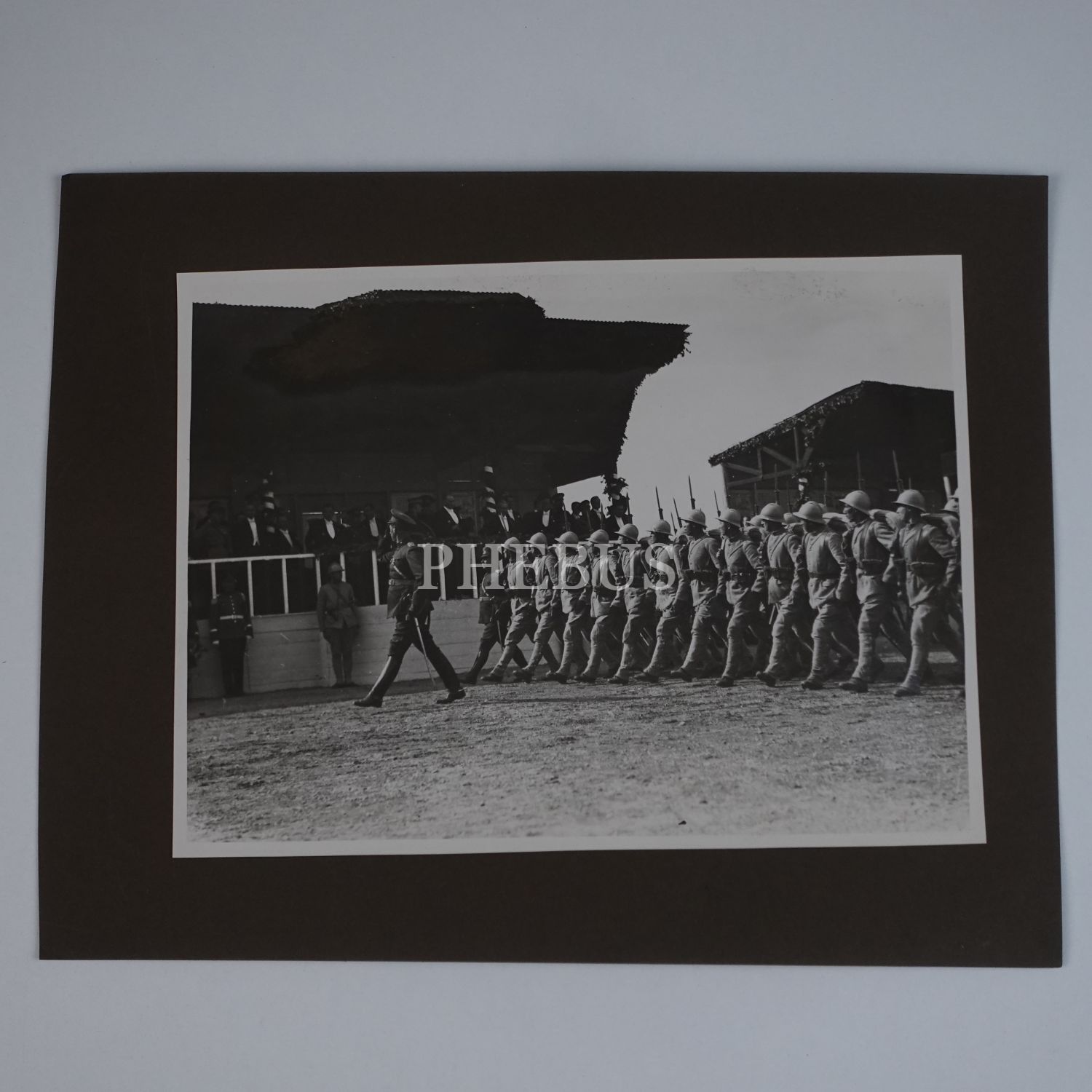 Ankara Hipodromu´nda düzenlenen 10. Yıl törenlerinde, Mustafa Kemal Atatürk´ün bulunduğu protokolün önünden geçen Türk piyadeleri, 24x18 cm...