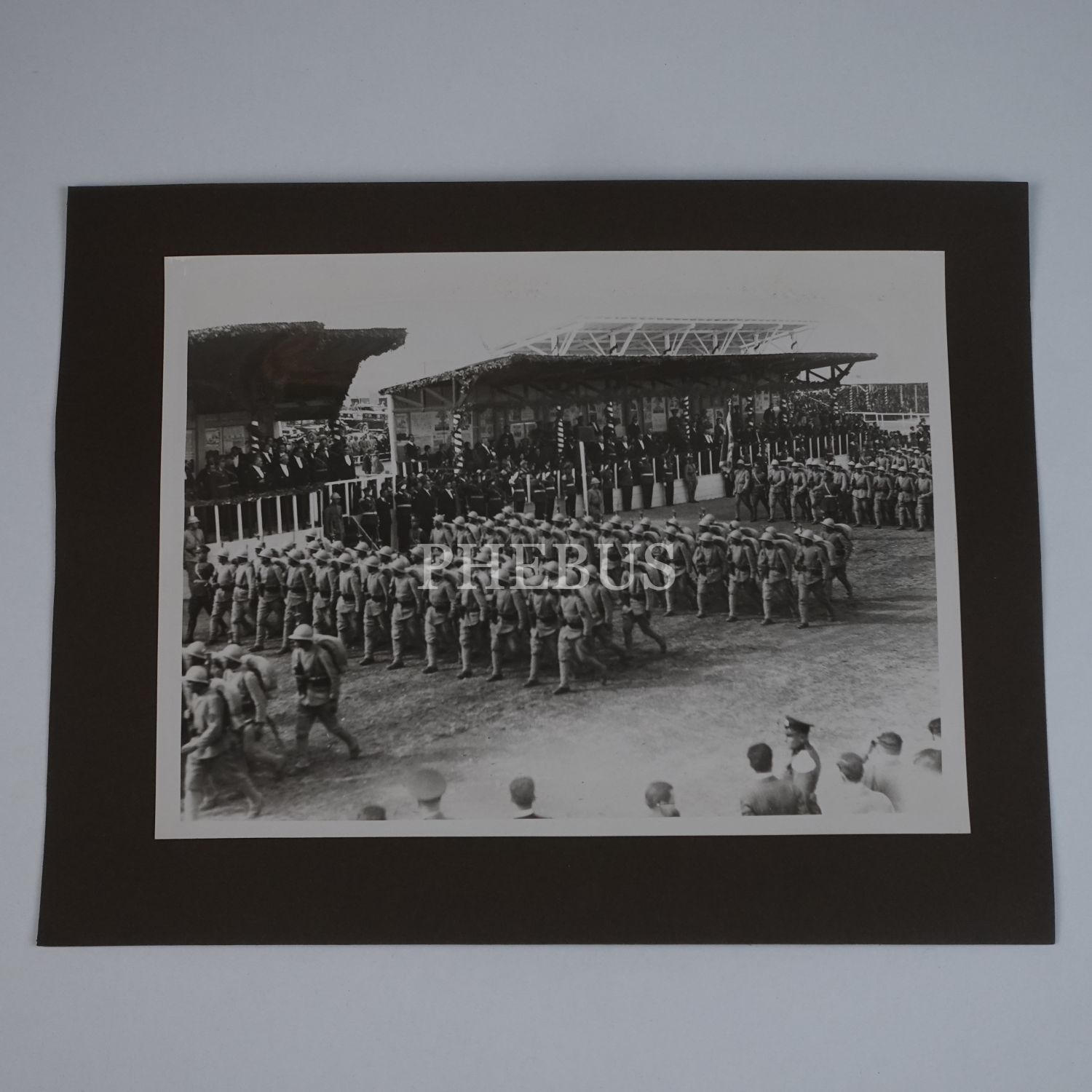 Ankara Hipodromu´nda düzenlenen 10. Yıl törenlerinde, Mustafa Kemal Atatürk´ün bulunduğu protokolün önünden geçen Türk deniz piyadeleri, 24x18 cm...