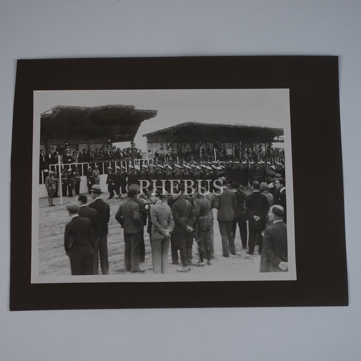 Mustafa Kemal Atatürk, Fevzi Çakmak, İsmet İnönü ve Kazım Özalp, Ankara Hipodromu´nda düzenlenen 10. Yıl törenlerini seyrediyor, 24x18 cm...