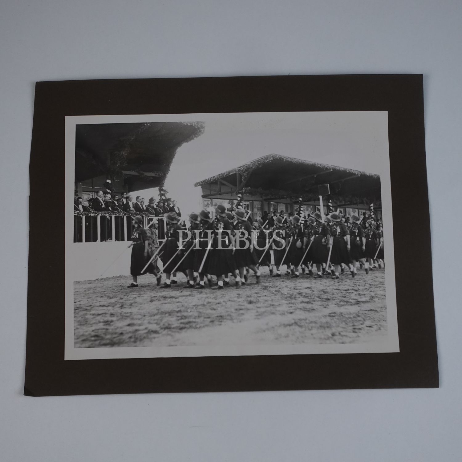 Ankara Hipodromu´nda düzenlenen 10. Yıl törenlerinde, Mustafa Kemal Atatürk´ün bulunduğu protokolün önünden geçen izci öğrenciler, 24x18 cm...