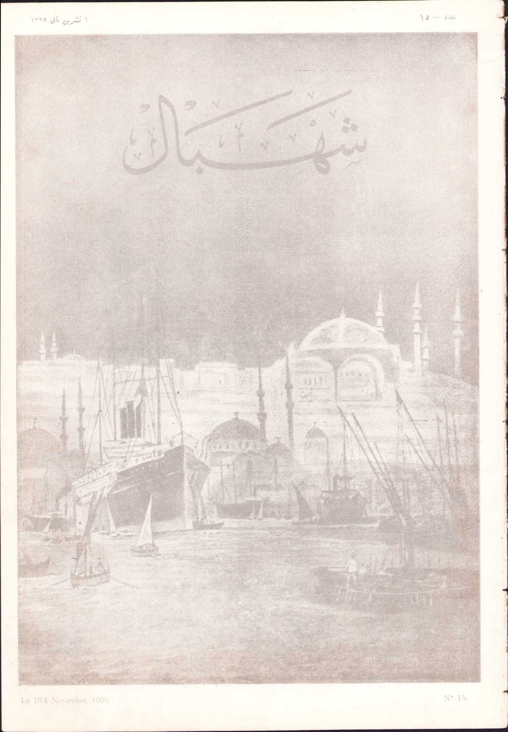Osmanlıca Şehbal dergisi, 1909, resimli , cilt çıkması, 16 sayfa, 27x39 cm