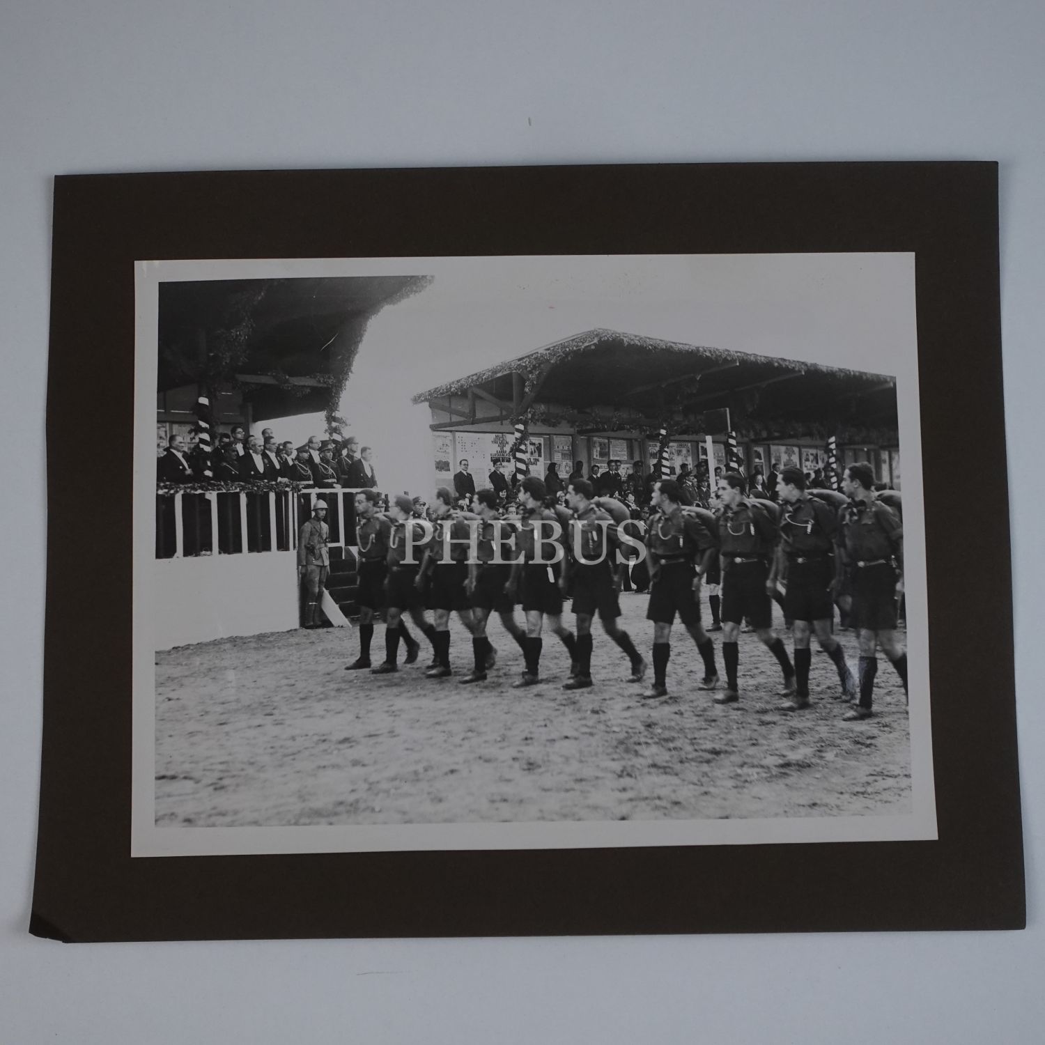 Ankara Hipodromu´nda düzenlenen 10. Yıl törenlerinde, Mustafa Kemal Atatürk´ün bulunduğu protokolün önünden geçen öğrenciler, 24x18 cm...