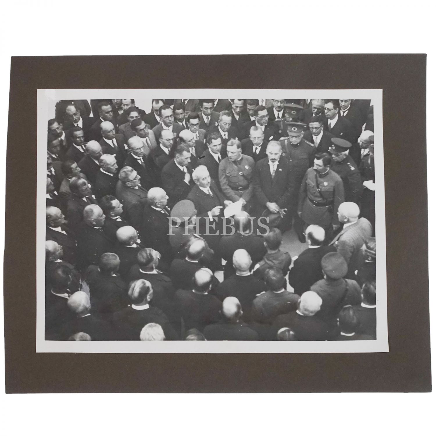 İsmet İnönü ve Kazım Özalp, 10. Yıl törenlerine katılan yabancı misyon temsilcilerinin ve Türk diplomatların arasında, 24x18 cm...