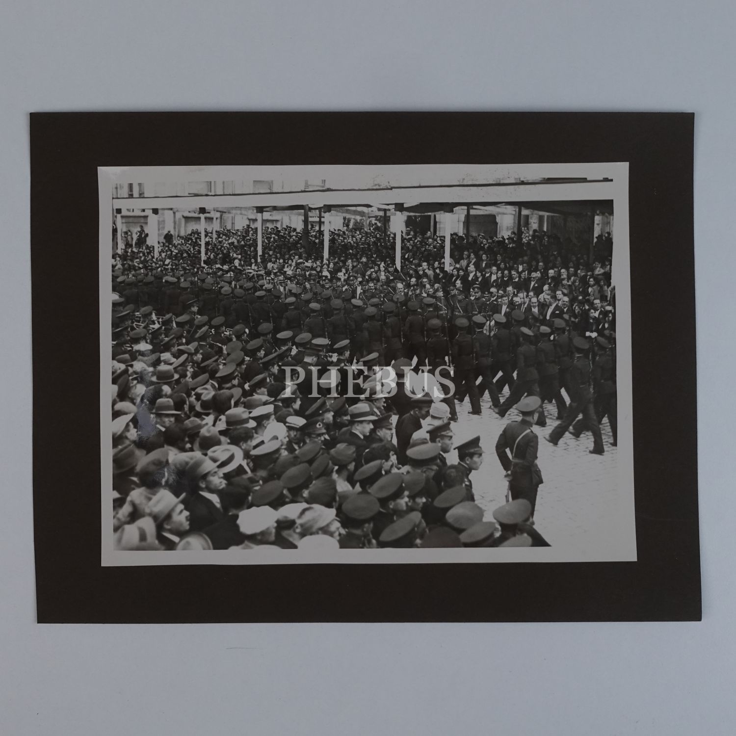 İstanbul´da düzenlenen 10. Yıl törenlerinde, İstanbul Valisi Muhittin Memduh Üstündağ´ın bulunduğu protokolün önünden geçen Türk deniz piyadeleri, 24x18 cm...