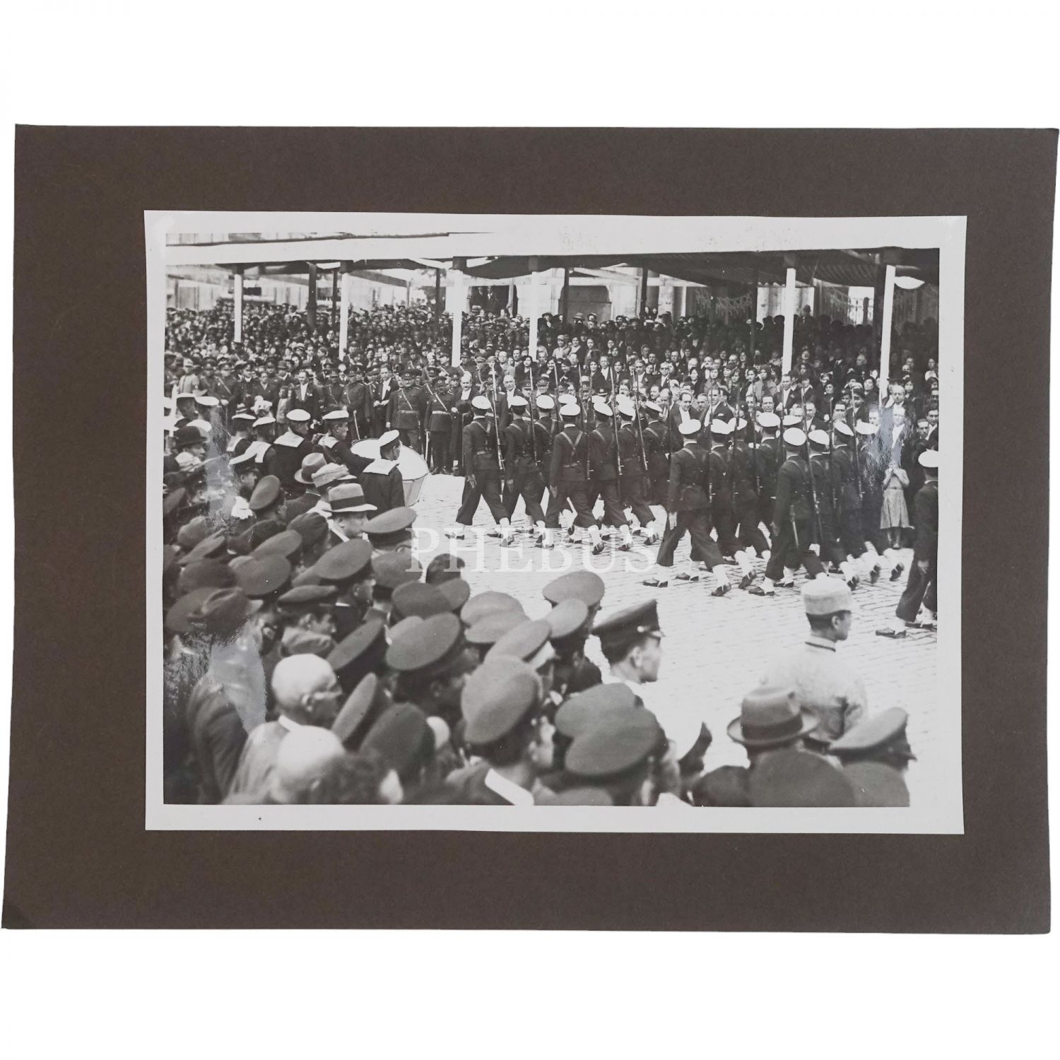 İstanbul´da düzenlenen 10. Yıl törenlerinde, İstanbul Valisi Muhittin Memduh Üstündağ´ın bulunduğu protokolün önünden geçen askeri öğrenciler, 24x18 cm...