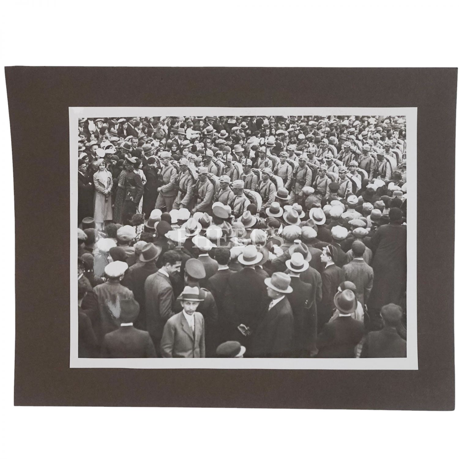 İstanbul´da düzenlenen 10. Yıl törenlerinde, halkın arasından tören alanına doğru intikal eden Türk piyadeleri, 24x18 cm...