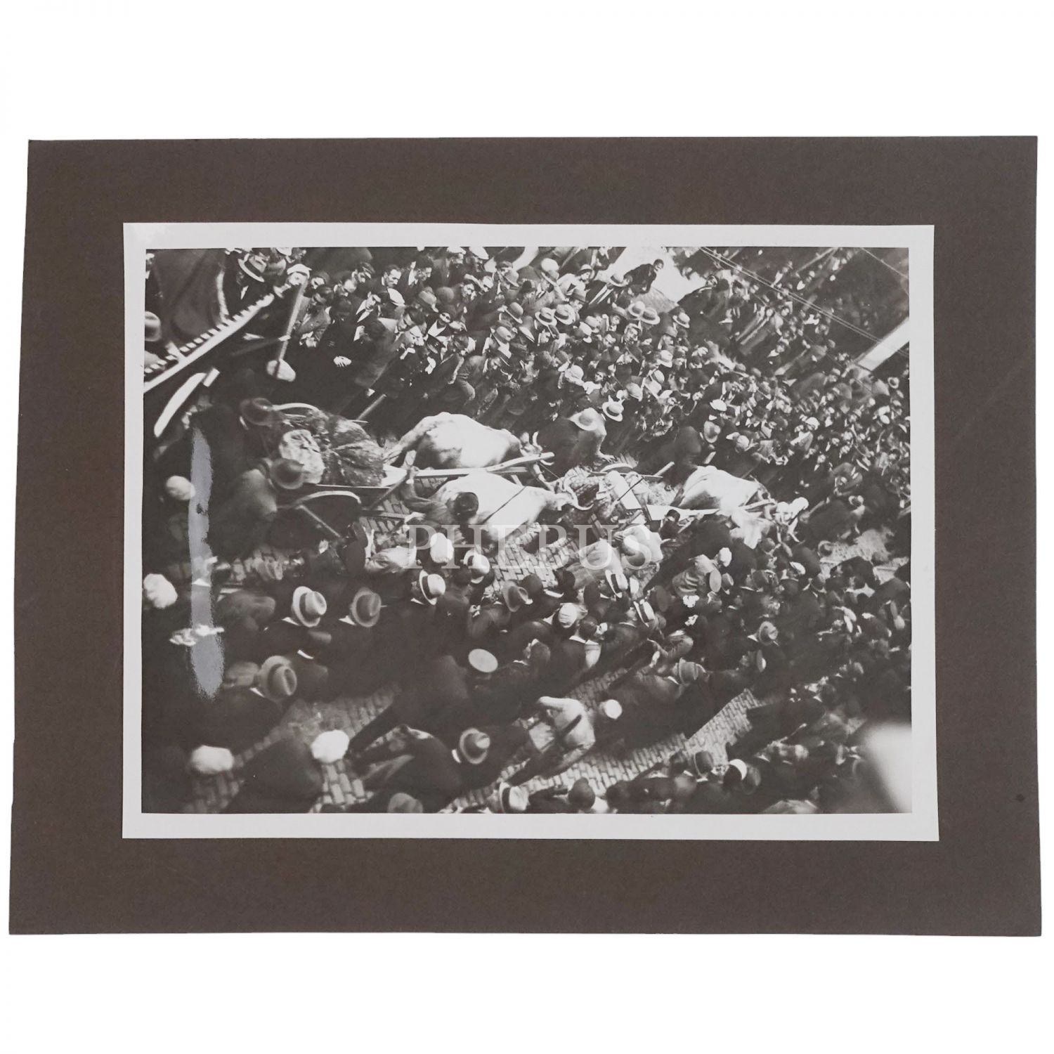 İstanbul´da düzenlenen 10. Yıl törenlerinde, öküz arabalarıyla halkın arasından tören kortejine doğru hareket eden çiftçiler, 24x18 cm...