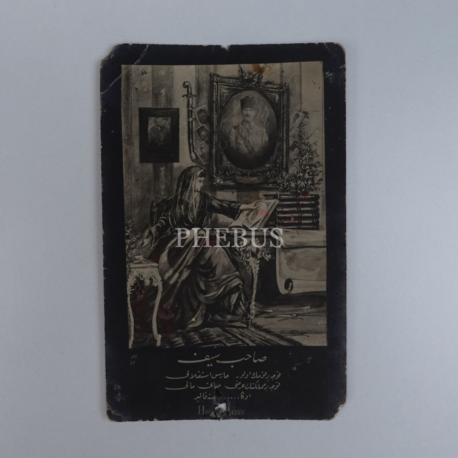 Mustafa Kemal Atatürk ve Tevfik Fikret portrelerinin yer aldığı, Tevfik Fikret´in "Kılıç" şiirinden dizelerin yazılı olduğu mefkûre kartpostalı, ed. Mehmet Selahattin Düzgünoğlu, 9x14 cm...