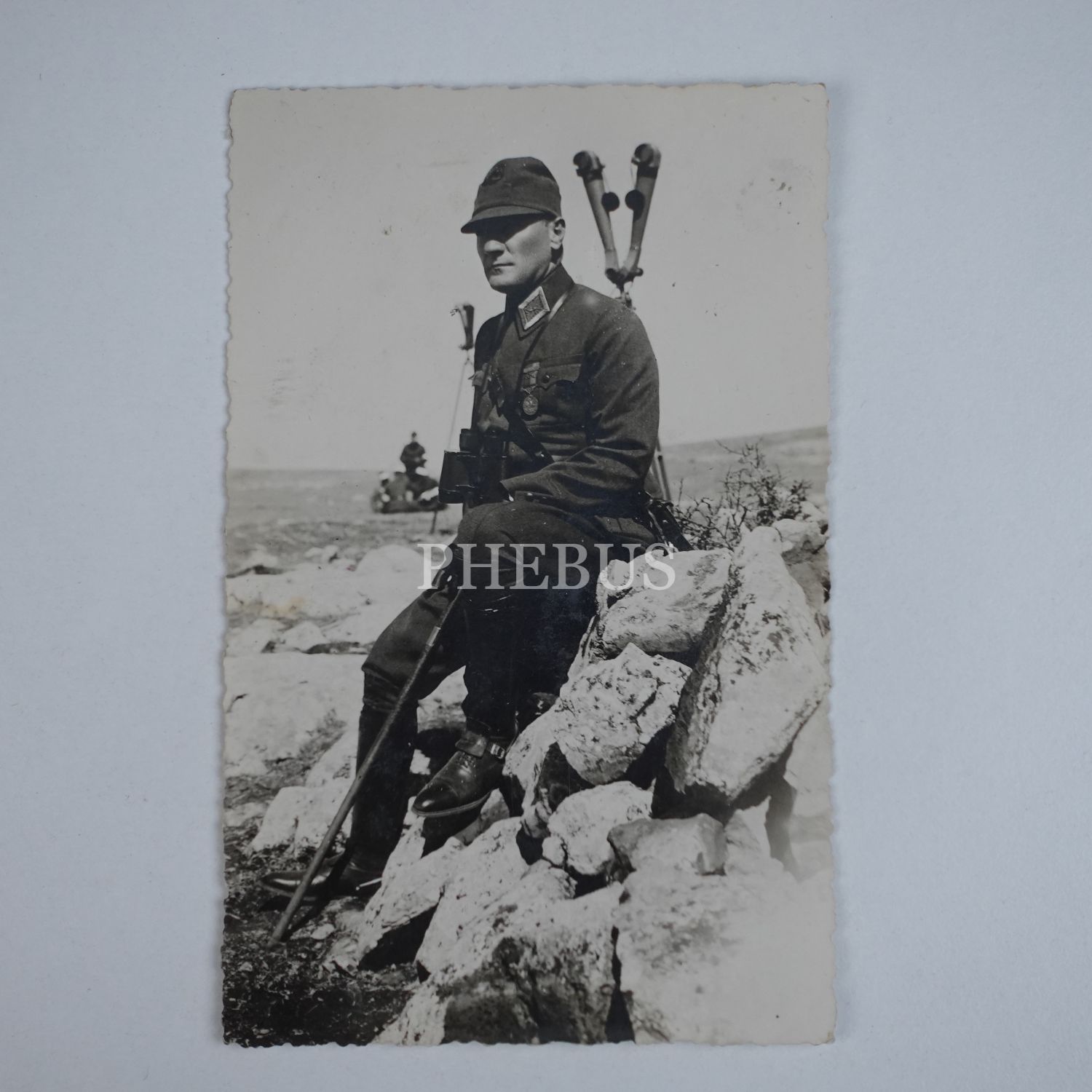 Mustafa Kemal Atatürk, İstiklal Madalyası takılı mareşal üniformasıyla, Ankara yakınlarında düzenlenen I. Ordu Manevraları´nda, 12 Ekim 1926, 9x14 cm...