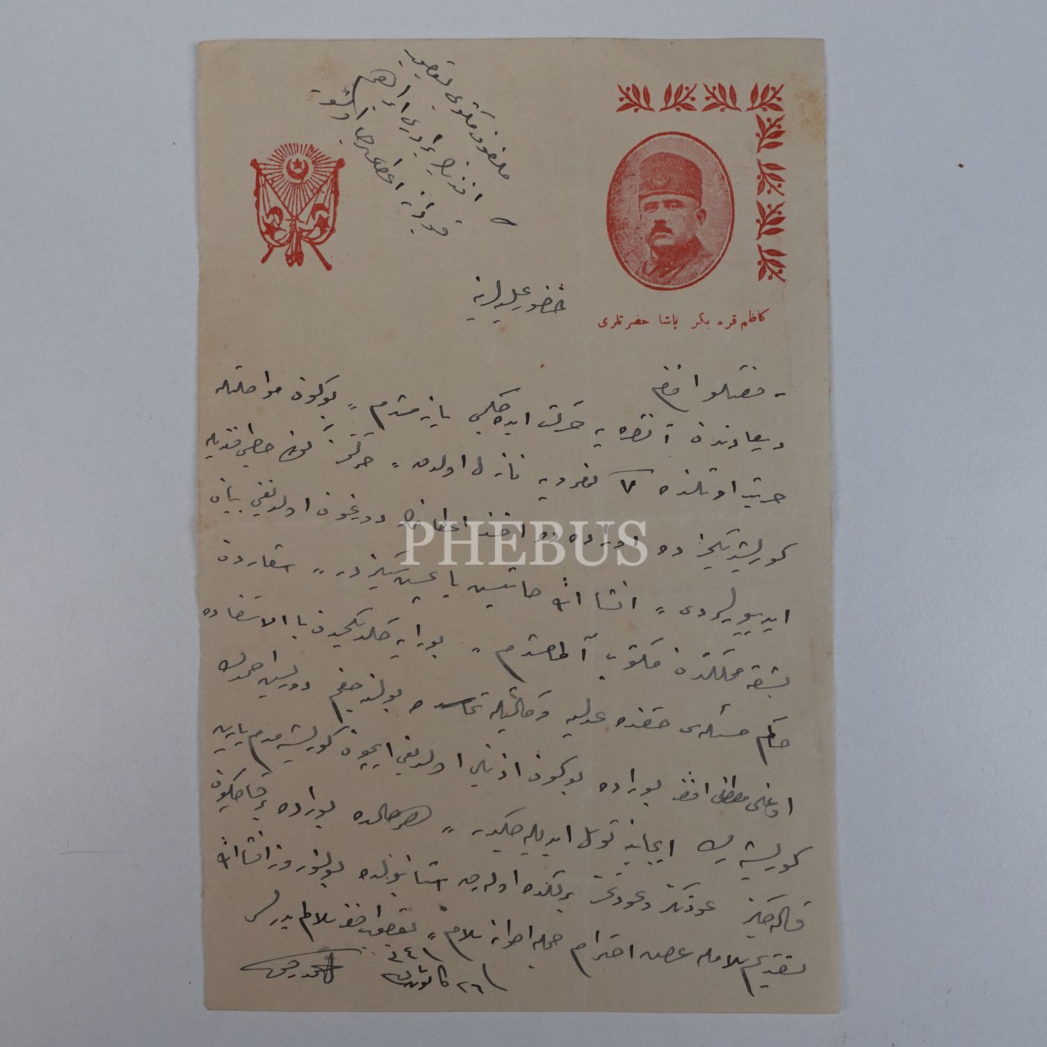 "Kazım Karabekir Paşa Hazretleri" antetli mektup kağıdı ve zarf, 14x20 cm...