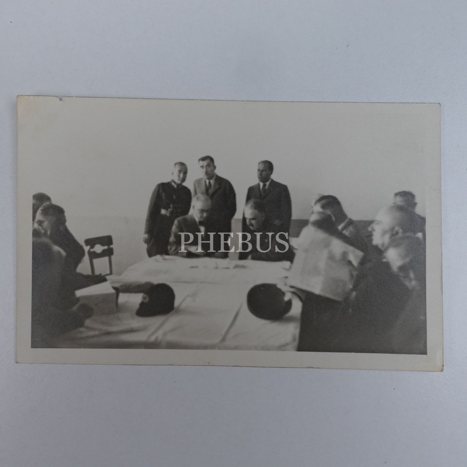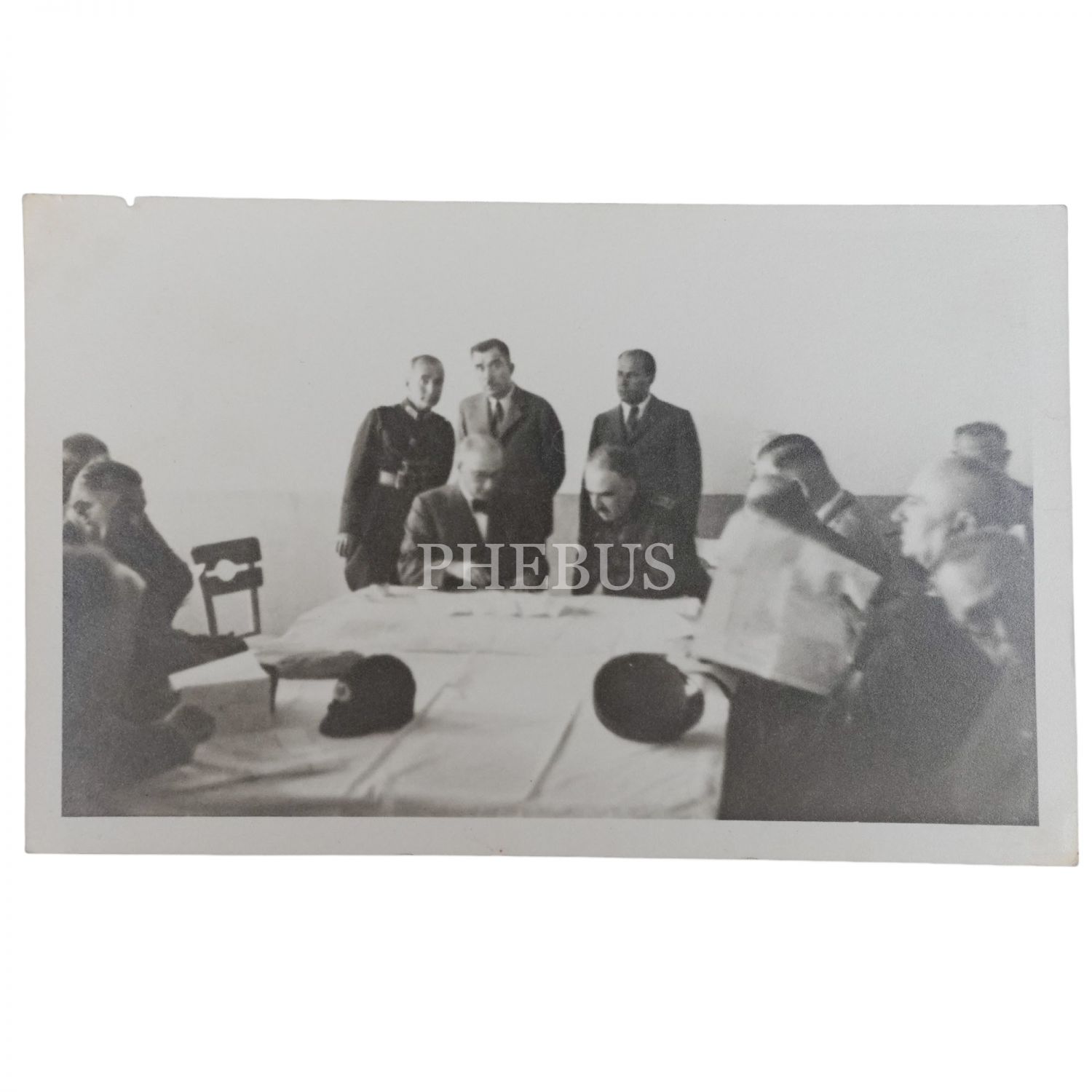 Mustafa Kemal Atatürk ve Fevzi Çakmak, 17-20 Ağustos 1937 tarihleri arasında düzenlenen Trakya Manevraları´nda taktik harita üstünde çalışırken, 14x9 cm...