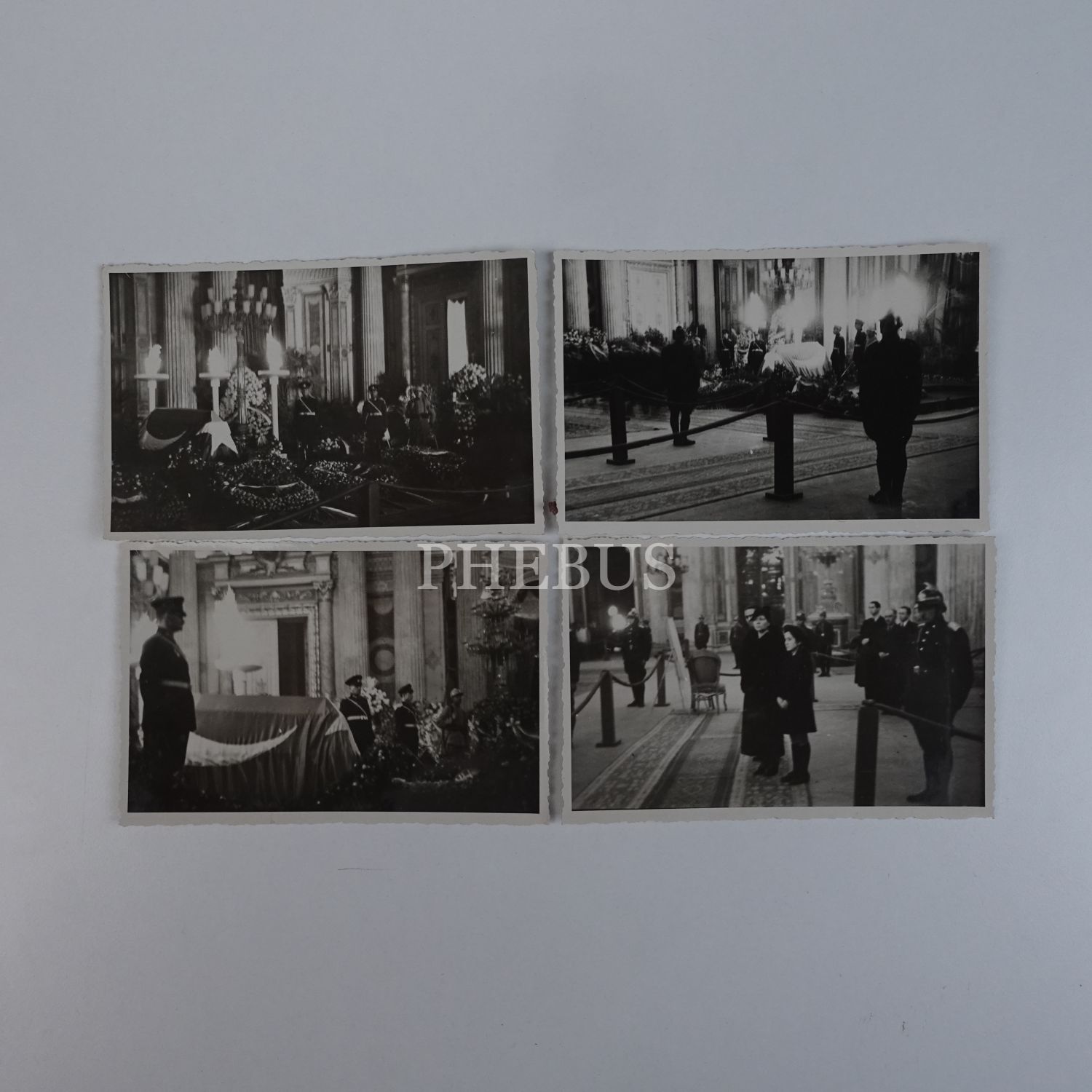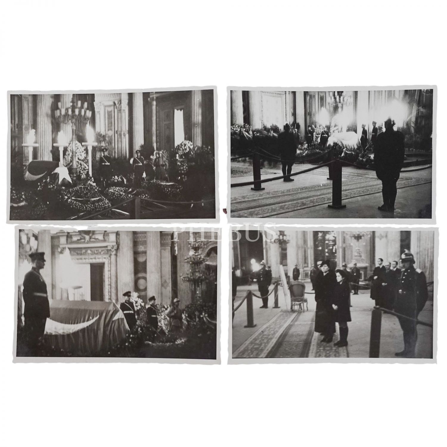 Mustafa Kemal Atatürk´ün, Dolmabahçe Sarayı´nın muayede salonunda bulunan katafalkı başında ihtiram nöbeti tutan subayların ve Atatürk´ü son kez ziyaret eden ziyaretçilerin görüldüğü 4 adet fotoğraf, 14x9 cm...
