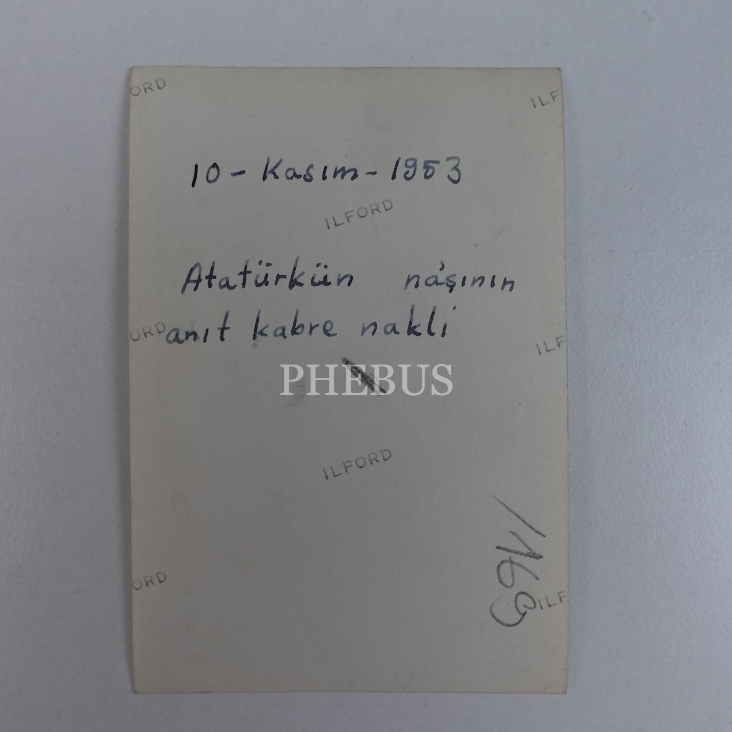 Mustafa Kemal Atatürk´ün naaşının Etnoğrafya Müzesi´nden Anıtkabir´e nakli esnasında çekilmiş bir fotoğraf, 10 Kasım 1953, 10x7 cm...