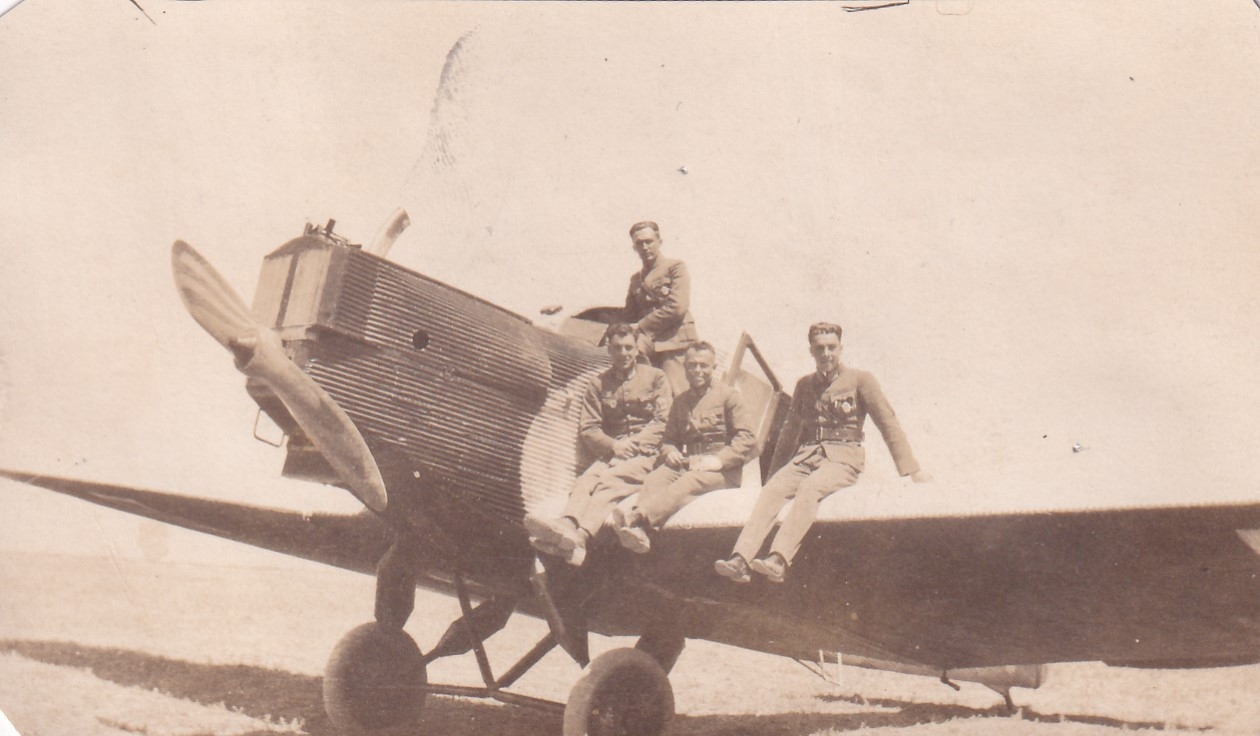 İlk Kaptan Pilotlardan Efsane Tayyareci Mustafa (Deli) Tahir MANER ve tayyareciler, kenarları kopuk, 10x6 cm