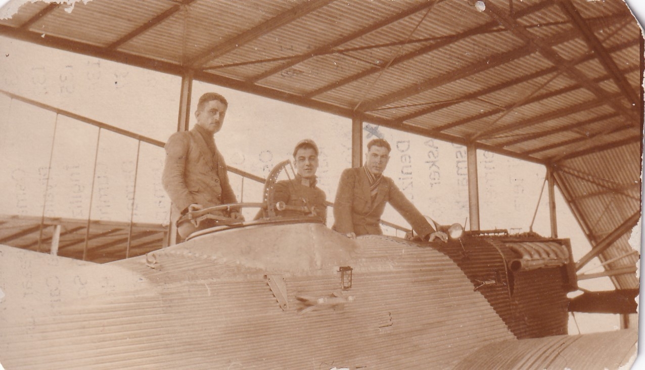 İlk Kaptan Pilotlardan Efsane Tayyareci Mustafa (Deli) Tahir MANER ve tayyareciler, kenarları kopuk, 10x6 cm