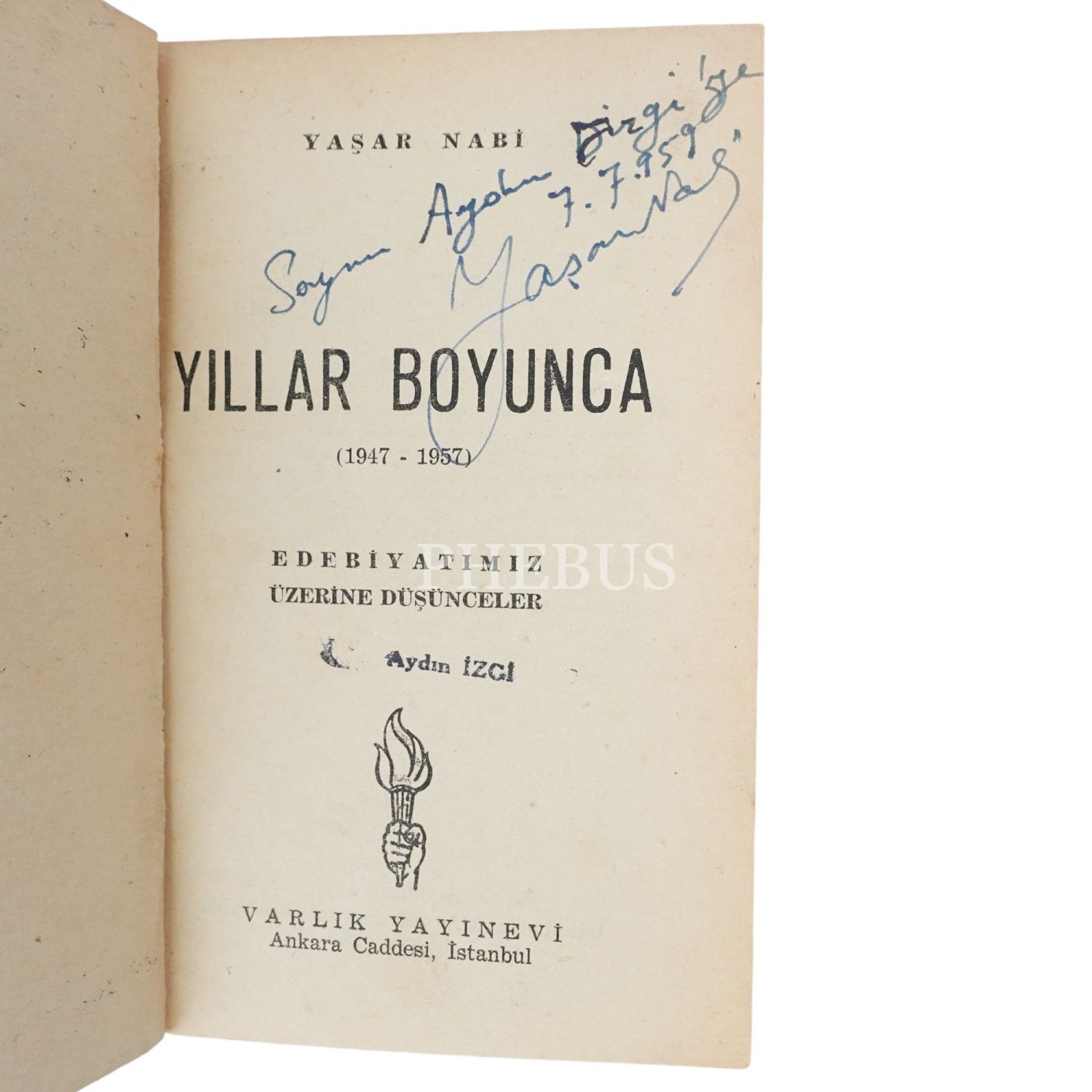 YILLAR BOYUNCA, Yaşar Nabi, 1959, Varlık Yayınları, 101 sayfa, 12x17 cm...