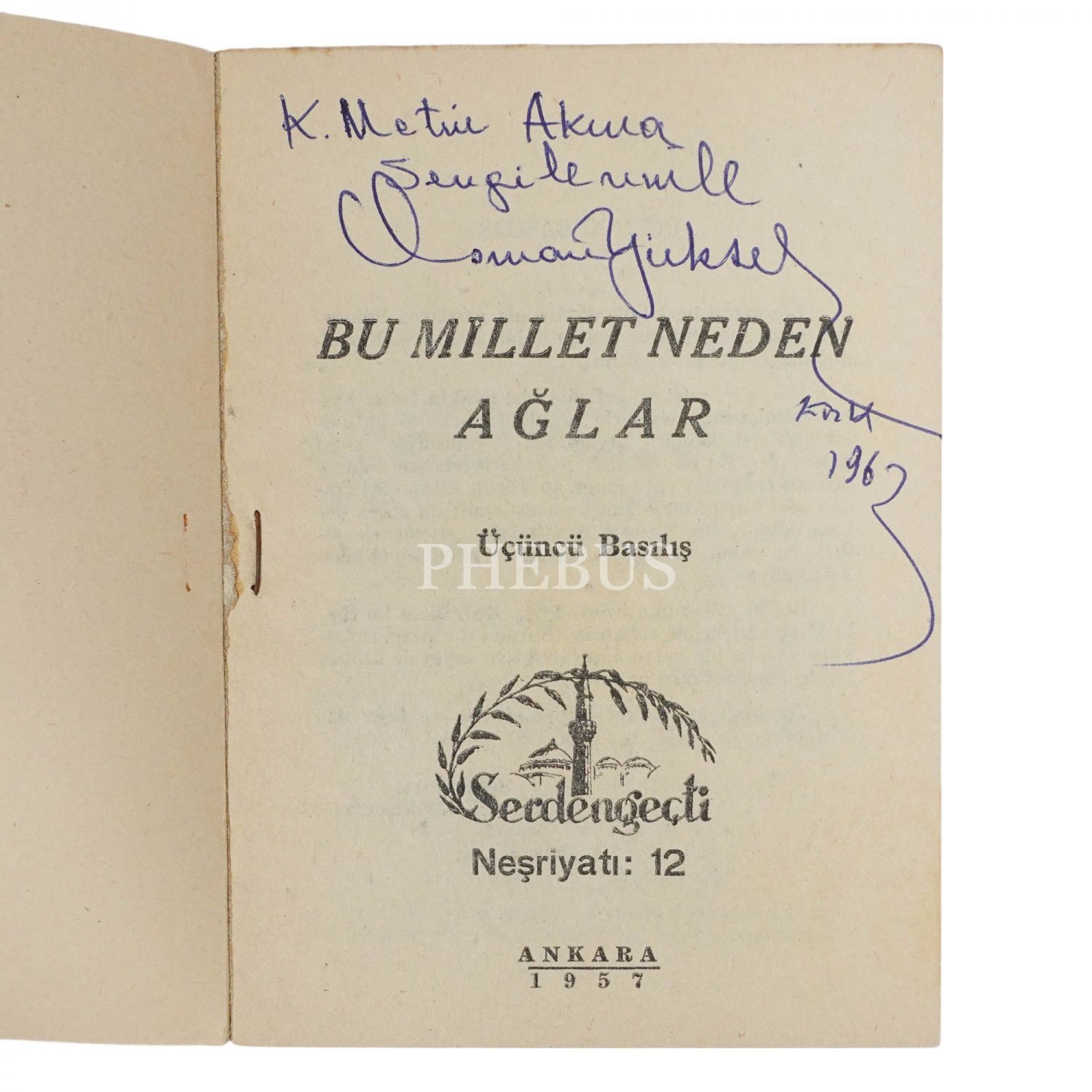BU MİLLET NEDEN AĞLAR, Osman Yüksel (Serdengeçti), 1960, Serdengeçti Neşriyatı, 64 sayfa, 13x17 cm...