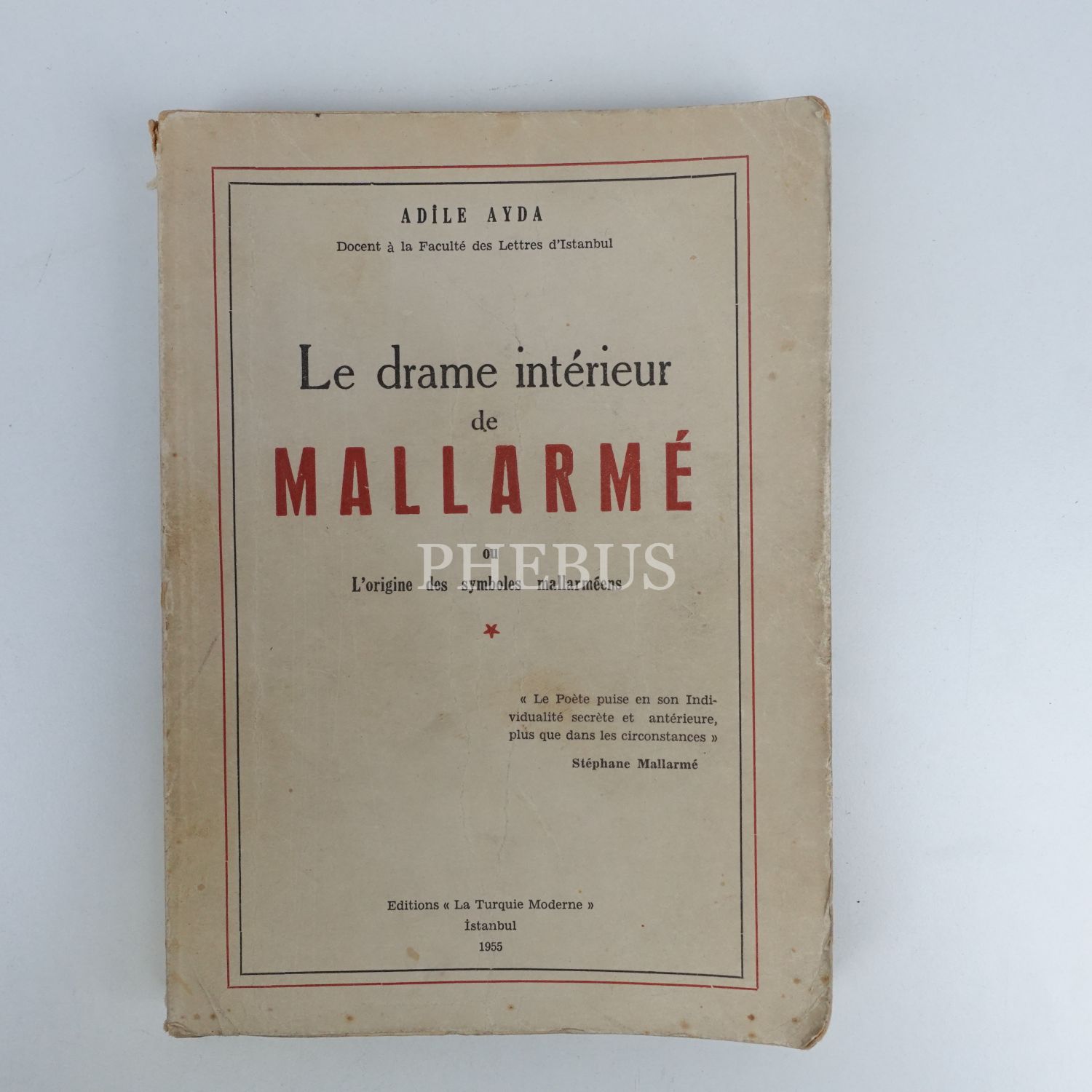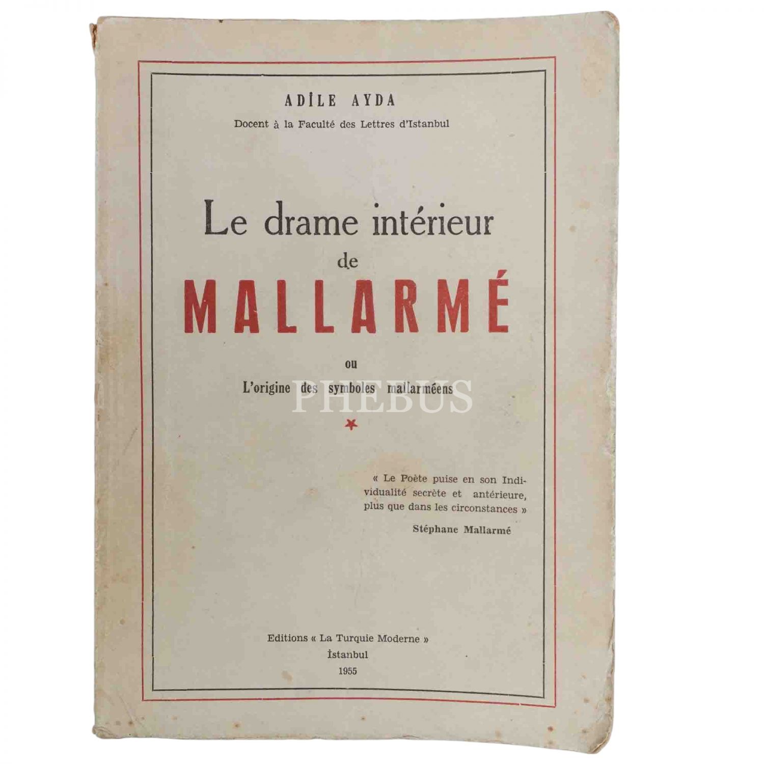 LE DRAME INTERIEUR DE MALLARME OU L´ORIGINE DES SYMBOLES MALLARMEENS, Adile Ayda, 1955, Editions "La Turquie Moderne", 288 sayfa, 15x20 cm...