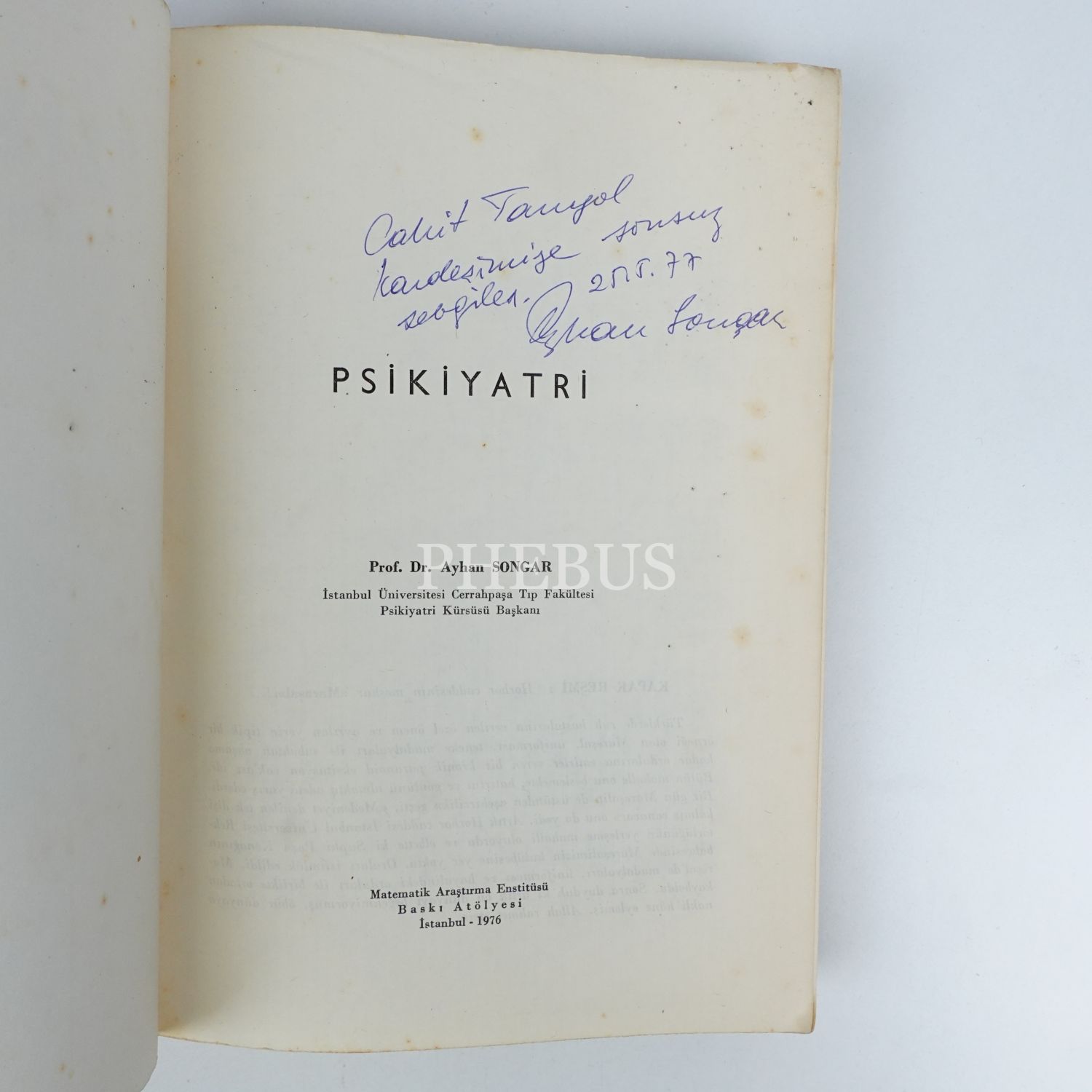 "Cahit Tanyol kardeşimize sonsuz sevgiler." ithafıyla, 25 Mayıs 1977 tarihinde imzalanmıştır.