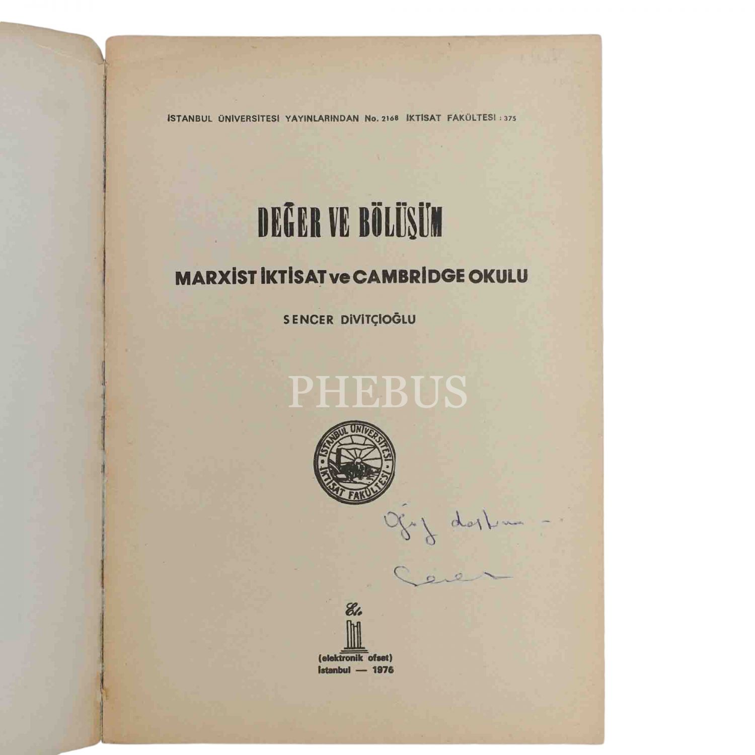 DEĞER VE DÖNÜŞÜM (Marxist İktisat ve Cambridge Okulu), Sencer Divitçioğlu, 1976, İstanbul Üniversitesi İktisat Fakültesi Yayınları, 223 sayfa, 17x23 cm...