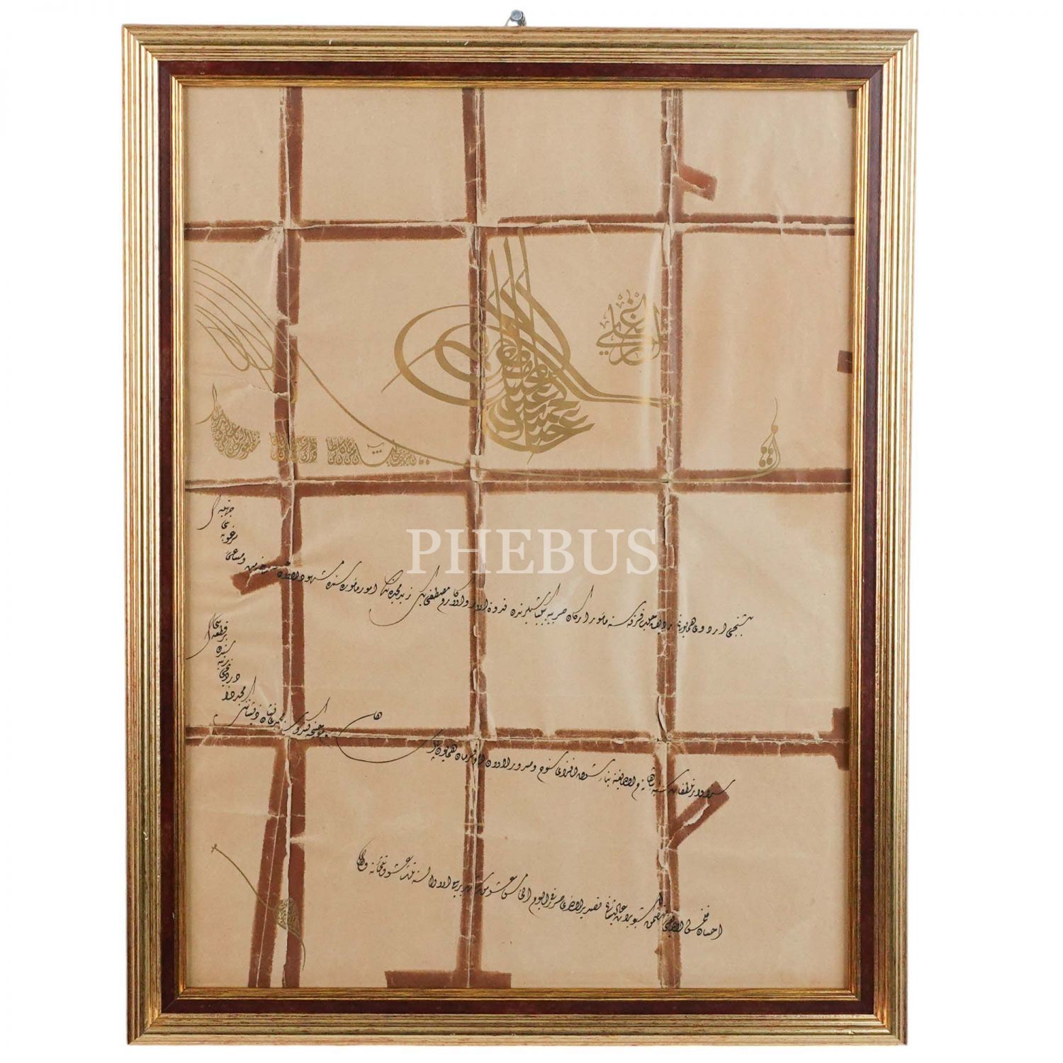 Beşinci Ordu-yu Hümayun´un Halep Fırkası´nda görevli Binbaşı Mustafa Bey´in dördüncü derece Mecidî Nişanı aldığına dair Sultan İkinci Abdülhamit tuğralı berat, çerçeve ölçü: 43x57 cm...