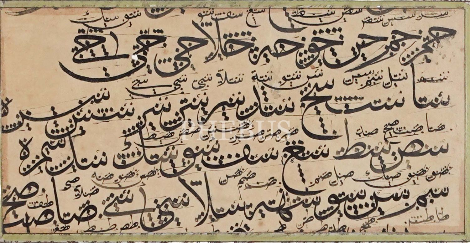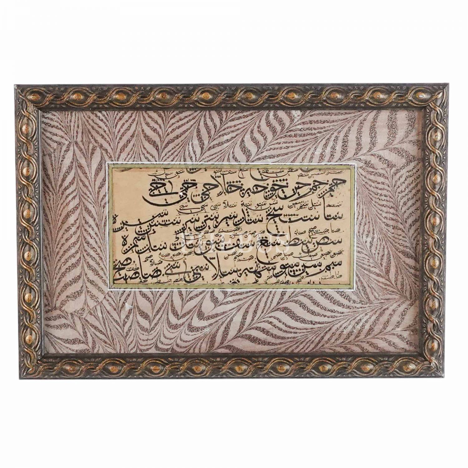 Sülüs-nesih hoca işi karalama, yazı: 19x10 cm, çerçeve ölçü: 35x24 cm...