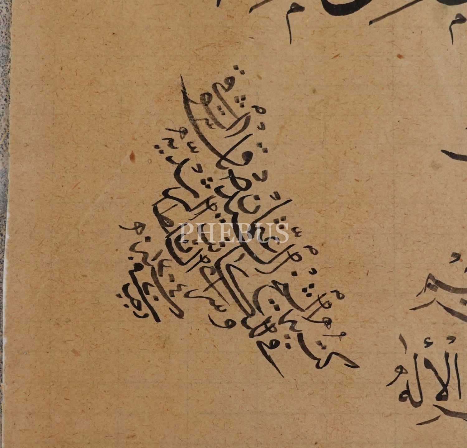 Rüşdiye Mektepleri Hüsn-i Hat Hocası Sadık Şevki namıyla maruf Şeyh Seyyid Osman Efendi ketebeli sülüs-nesih kıta, 1304 tarihli, çerçeve ölçü: 25x17 cm...