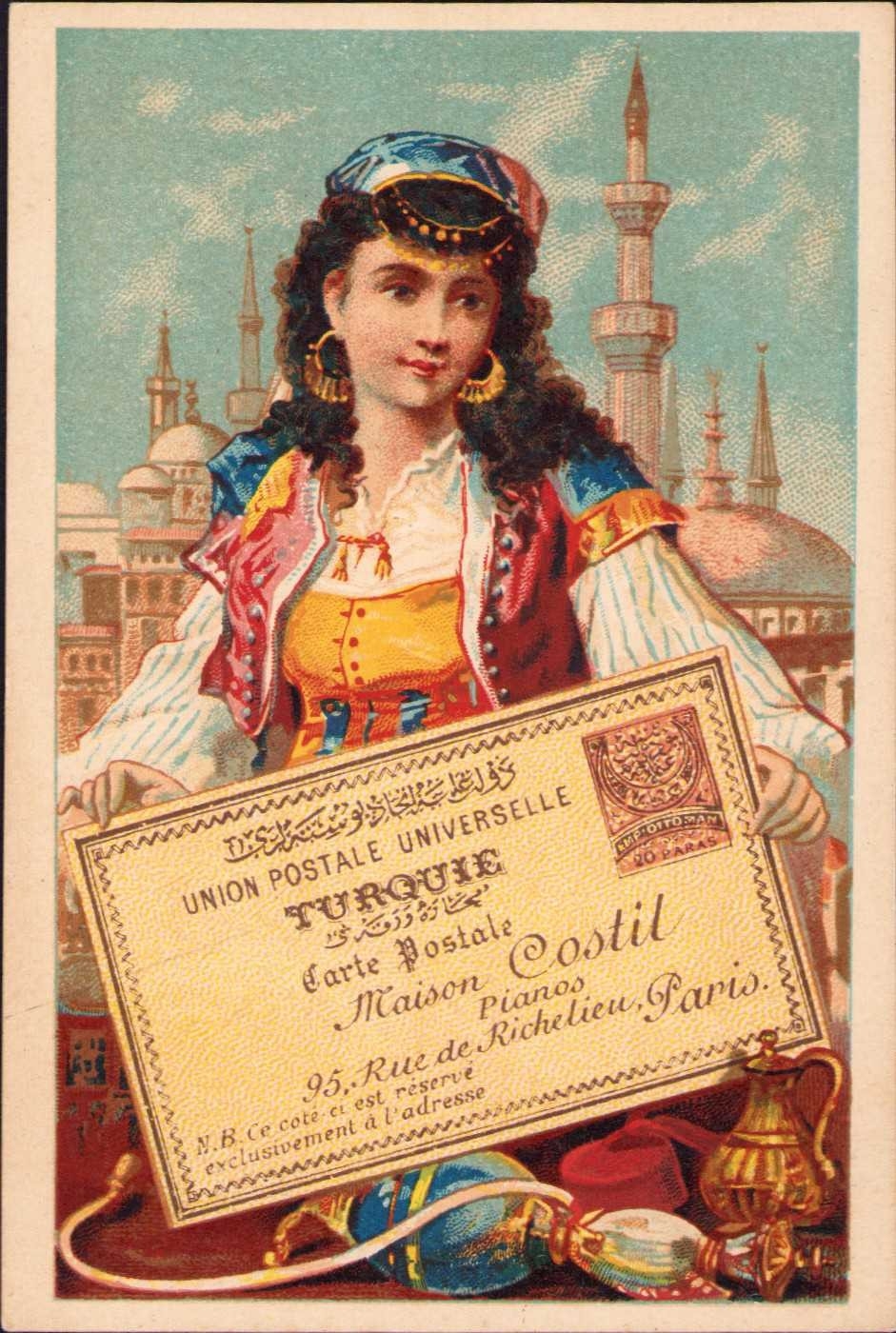 Taş baskı Osmanlı antiye görselli kart, 11x7 cm