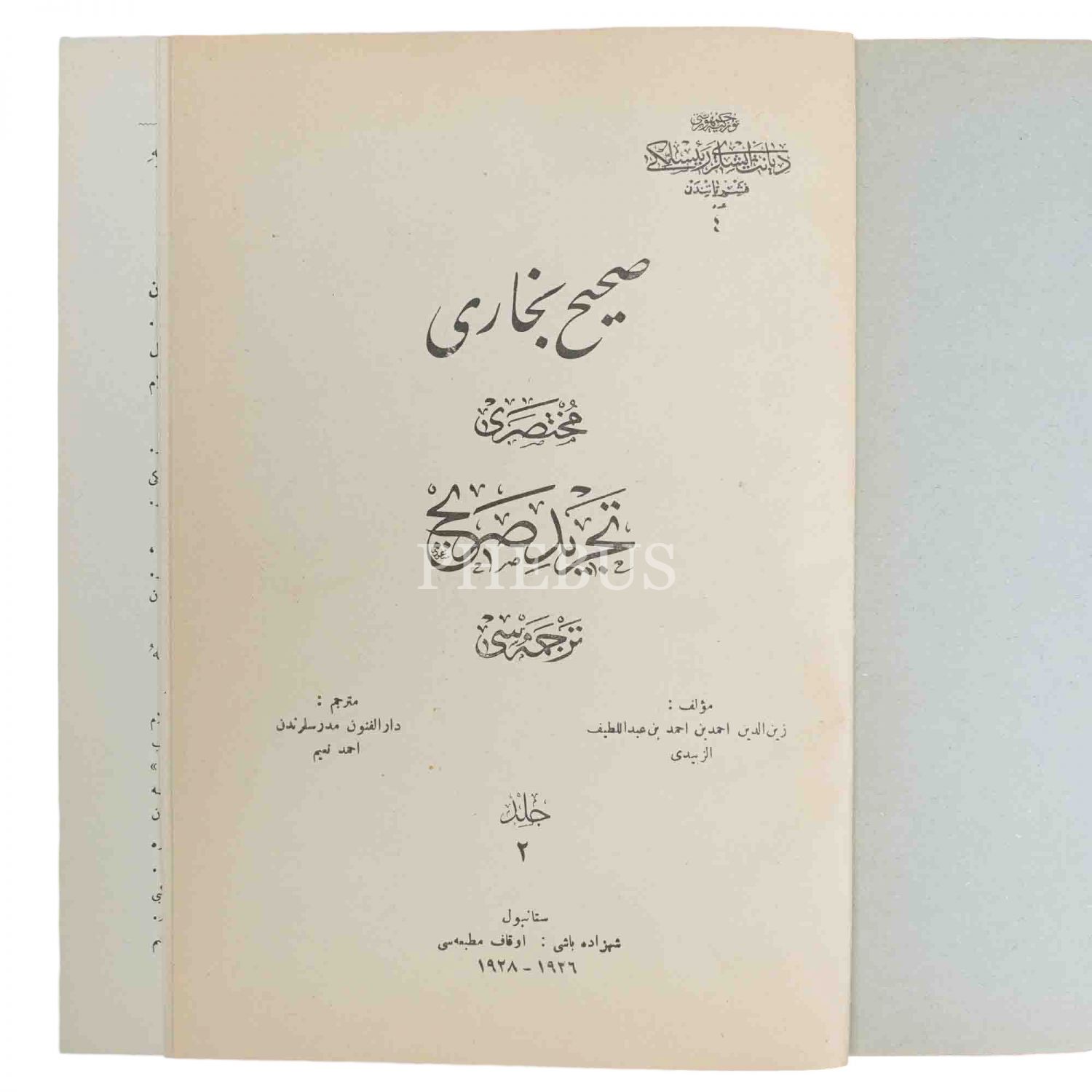 SAHİH-İ BUHARİ MUHTASARI MUHTASARI TECRİD-İ SARİH TERCÜMESİ (1 ve 2. Cilt), Zeyneleddin Ahmed bin Ahmed bin Abdüllatif Ez-zeydi, (çeviren: Ahmed Naim), 1928, 17x24 cm...
