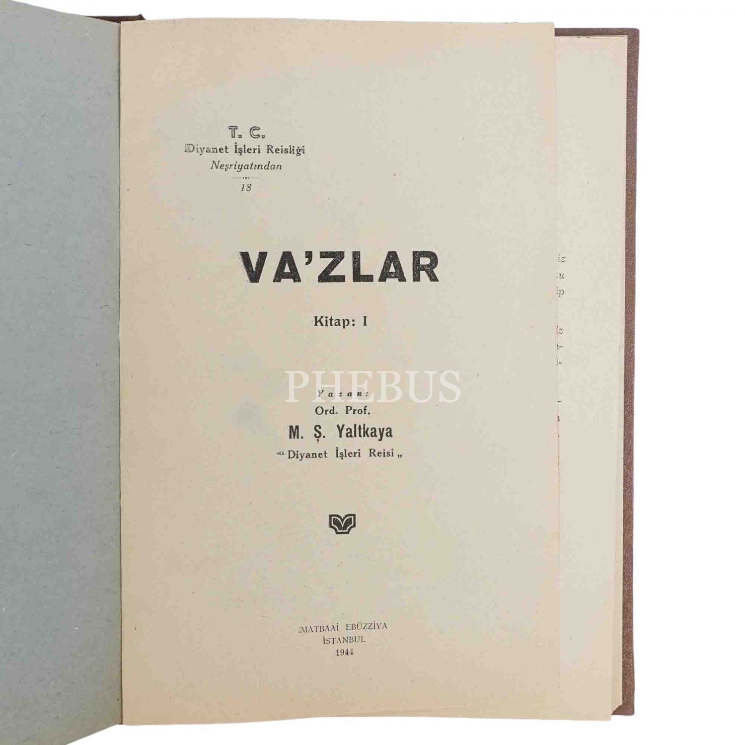 VAAZLAR, M. Ş. Yaltkaya, 1944, Matbaa-i Ebuzziya, 119 sayfa, 16x24 cm...