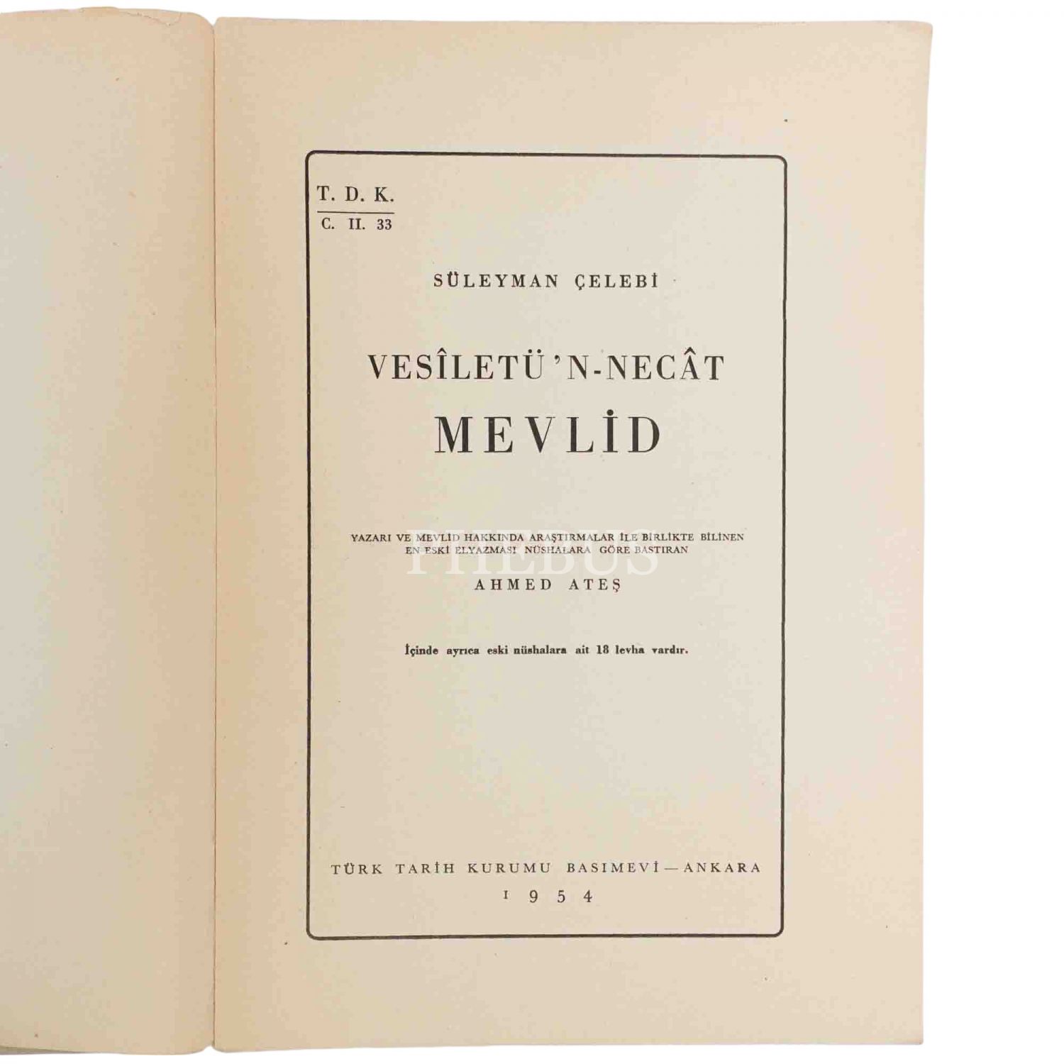 VESİLETÜ´N-NECAT MEVLÜD, Süleyman Çelebi, (yayına hazırlayan: Ahmed Ateş), 1954, Türk Tarih Kurumu Basımevi,