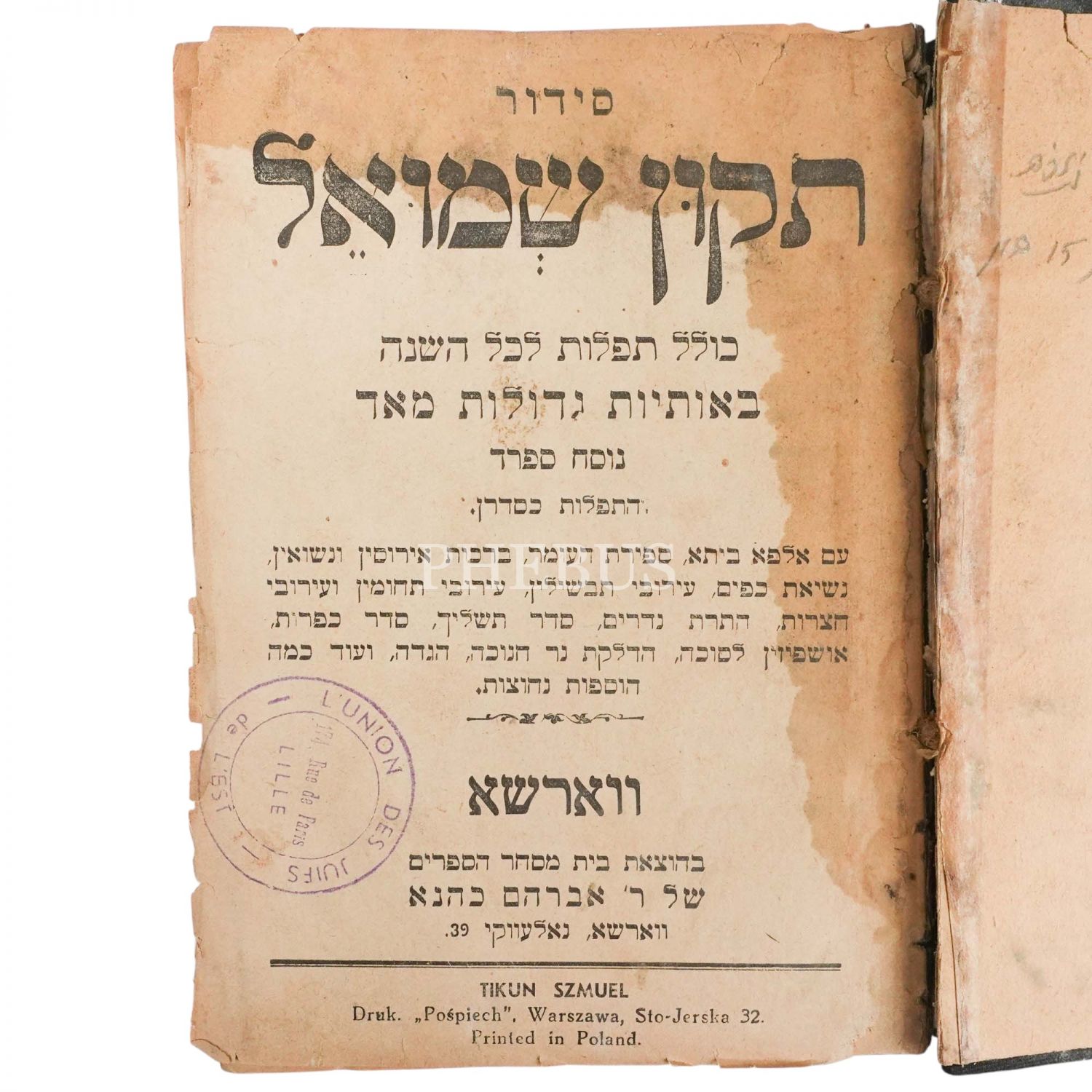 Tehilim, (תְהִלִּים) – Psalms, Hahamlar Tarafından Yazılı Nesilden Nesile Aktarılan Övgü Kitabı Mevcuttur. Künye Sayfasında Lille Yahudi Cemaatine Ait Mühür Mevcuttur.