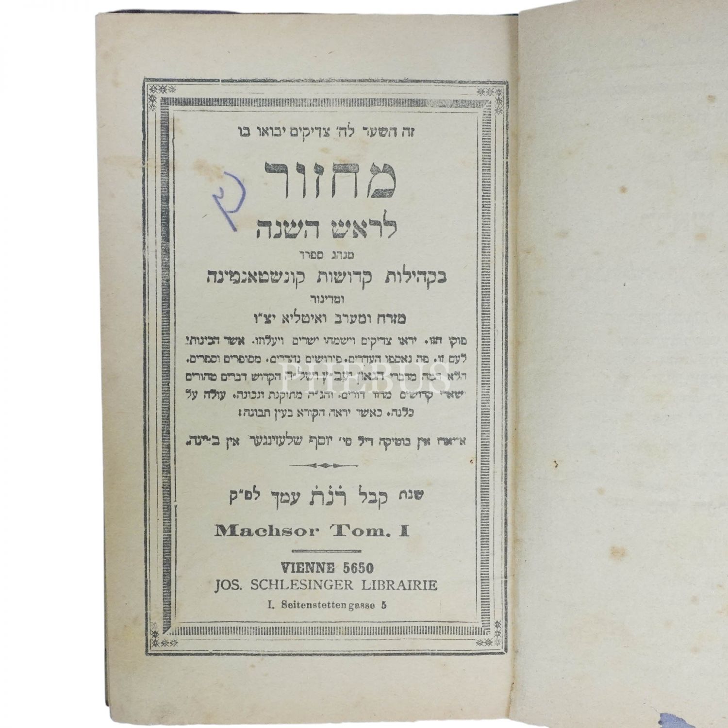 MACHZOR LEROSH HASHANA, (מחזור לראש השנה) Viyana Baskısı, 1890 (5650) Baskı, Cilt 1. Schlesinger Kütüphanesi, 204 Sayfa, 12 x 19 cm...