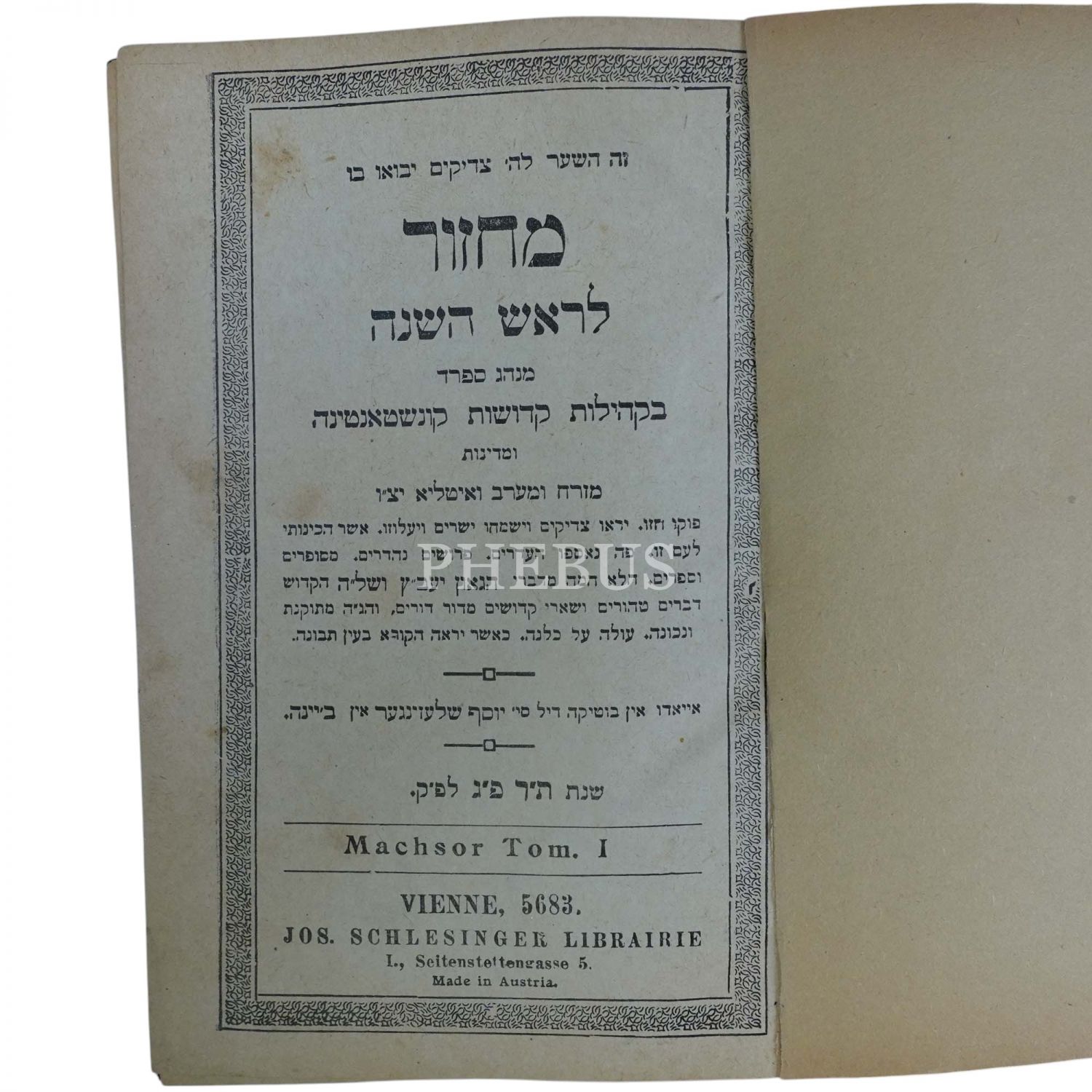 MACHZOR ROSH HASHANA (מחזור לראש השנה) Viyana baskısı, 1923 (5683) baskı, cilt 1. Schlesinger Kütüphanesi, 201 Sayfa, 18,5 x 13 cm...