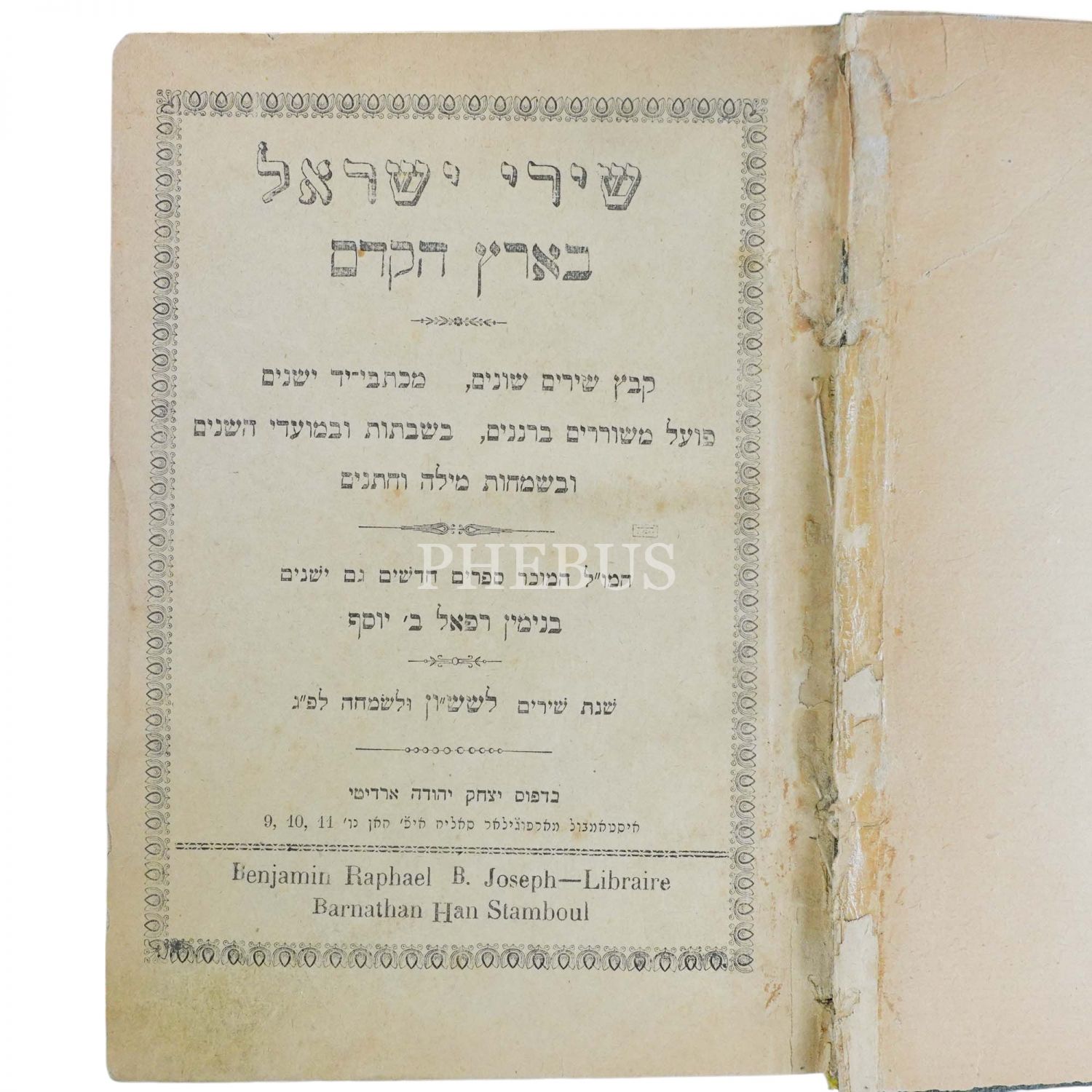 SHİREİ İSRAEL BEERETZ HA KEDEM, Binyamin Raphael B. Joseph Kütüphanesi, İtshak Yehuda Arditi Matbaası, 5714, 252 Sayfa, 19 x 14 cm...