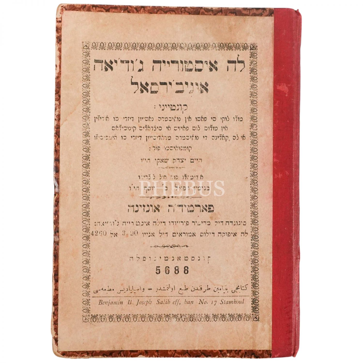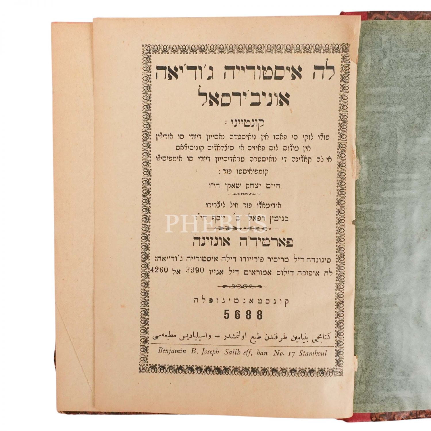 Ladino, LA İSTORİYA CUDİA UNİVERSAL, Genel Yahudi Tarihi, Constantinople 1928 (5688) Baskısı, 3990 yılından 4260´a (MS 230 - MS 500) 11. cilt, Yayınlayan Benjamin Raphael B. Joseph, Hayim Yisthak Şaki Tarafından Derlendi. 208 Sayfa, 20 x 14 cm...