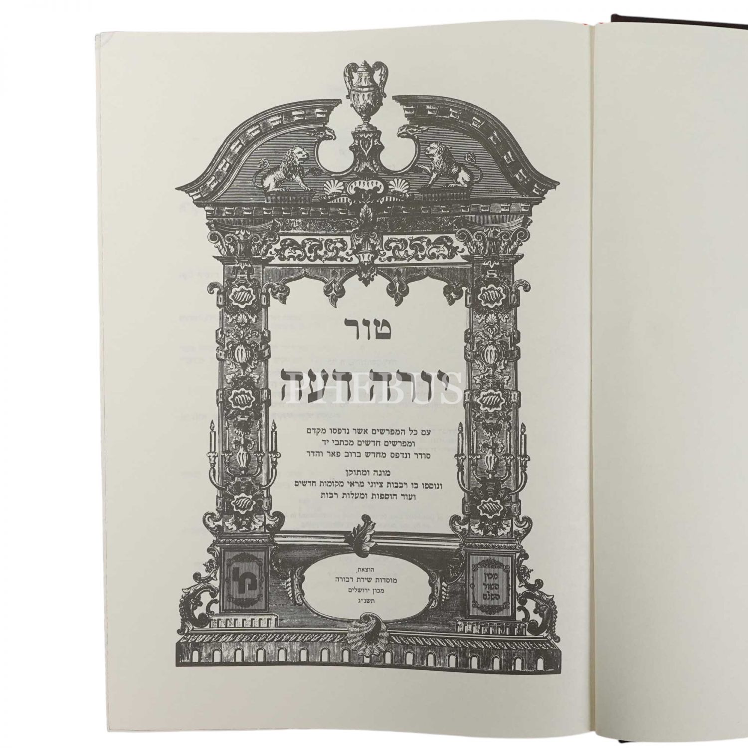 ARBA´AH TURİM HASHALEM, Rabbi Yaakov ben Asher, Mosdot Shirat Devorah, Machon Yerushalayim, İsrail Tel Aviv baskısı Deborah Publishing Ltd. İbranice ve Eski İspanyolca yazılı ve geniş yorumlu, 1993, 389+45+58+30 Sayfa, 33 x 24 cm...