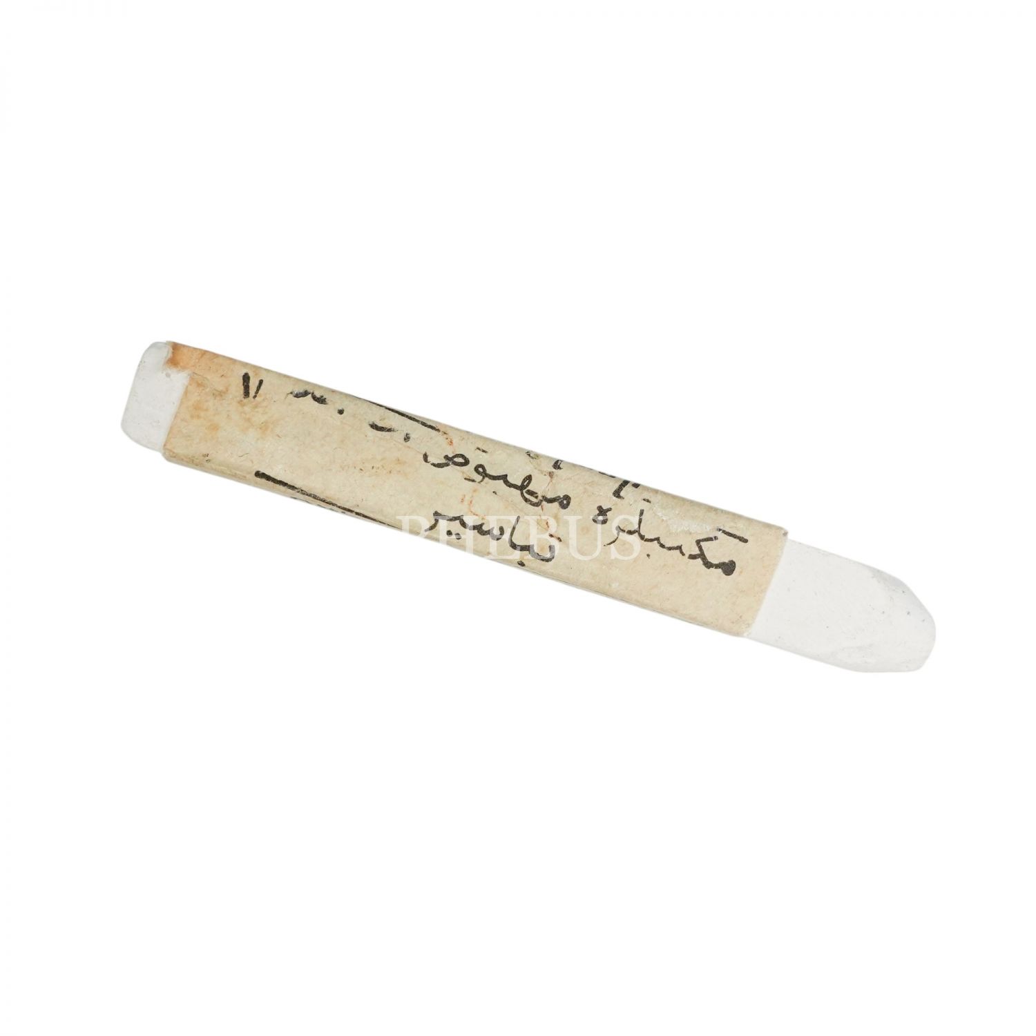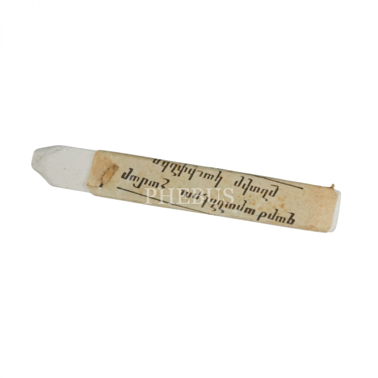 Her bir yüzü ayrı lisanda (İbranice, Osmanlıca, Rumca ve Ermenice) "Mektepler için en âlâ tebeşir" yazılı okul tebeşiri... *Ortasında kırık mevcuttur.